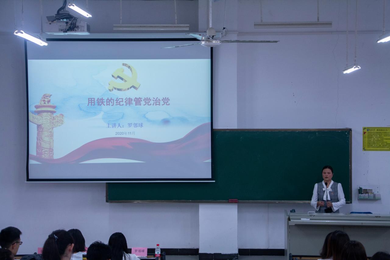 罗邻球副书记就“用铁的纪律管党治党”进行深入讲解,从党章、准则、条例、规则、规定、办法和细则等纪律,中国共产党章程党史发展之伟大而艰巨历程,以及党员、党员干部的廉洁自律规范等多个角度强调党的先进性和纯洁性以及党员作风建设的重要性,高举共产主义的伟大旗帜,生动再现了党的光辉历史风貌。