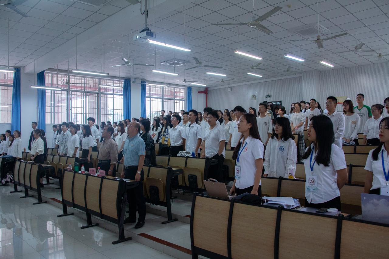全体人员起立,奏唱中华人民共和国国歌。会场歌声嘹亮,氛围庄严肃穆。