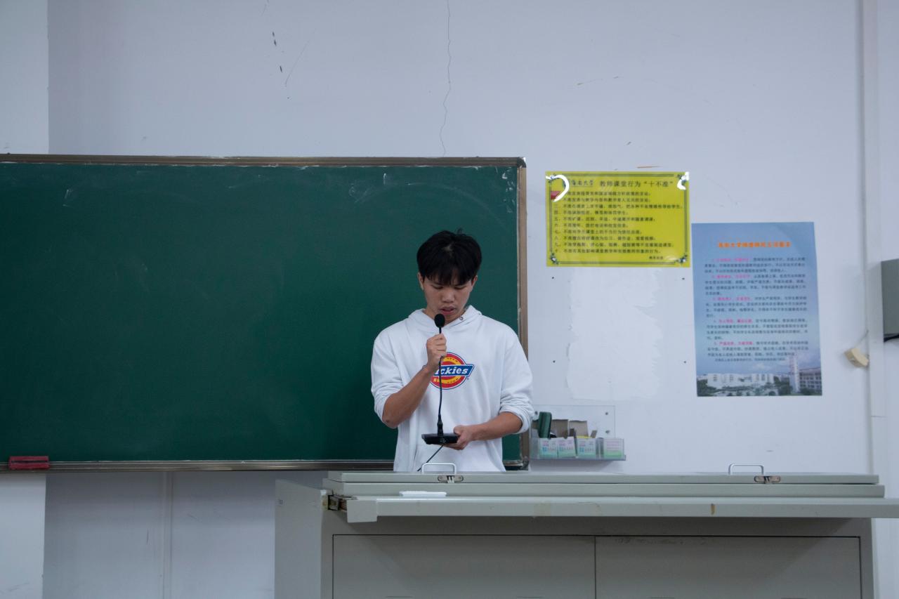 党课培训班学员代表陈瑞林上台发言,表达了我辈党员后备军必将不忘初心、爱党爱国、热忱工作,为自贸港的发展作出巨大贡献的决心。