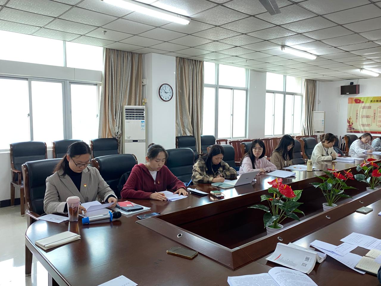 在讨论预备党员转正前,此次提交了转正申请的燕雨、郝晓菲、王越同志参加了转正答辩,通过现场问答、现场评议,各答辩同志对党的理论知识和预备期表现情况进行了陈述。