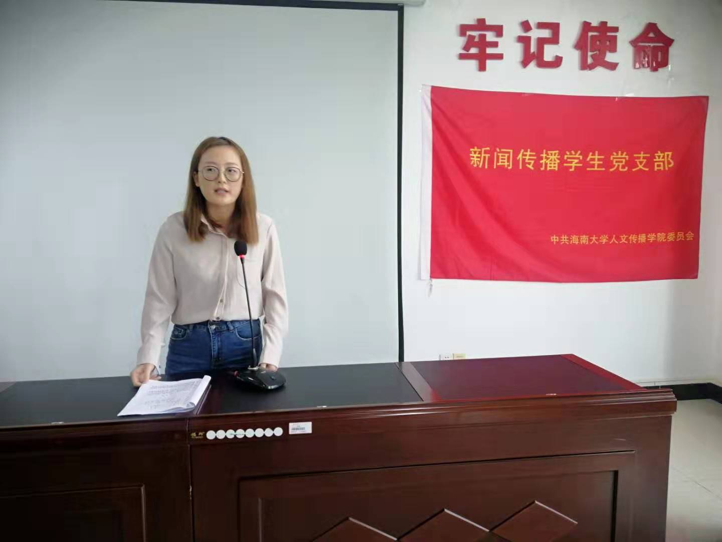 会议第一项,新闻传播员工党支部讨论预备党员接收。