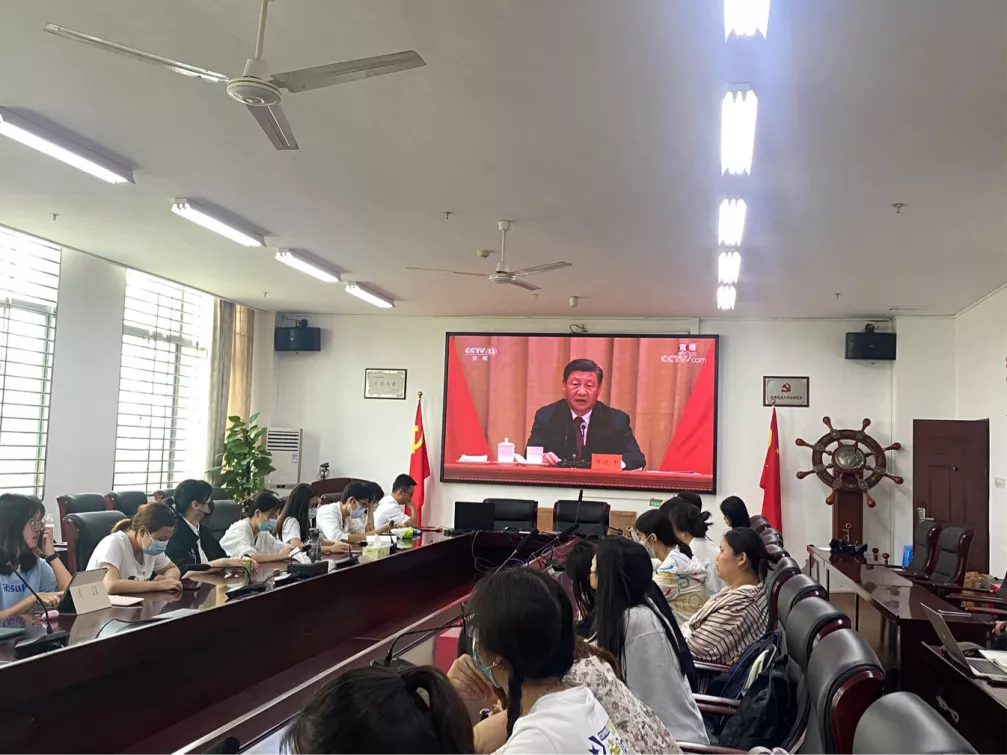 一百年来,中国共青团始终与党同心、跟党奋斗,不愧为中国青年运动的先锋队,不愧为党的忠实助手和可靠后备军,中文员工第一党支部全体预备党员及发展对象于5月10日,在社科楼C113,共同收看了庆祝中国共产主义青年团成立100周年大会直播。