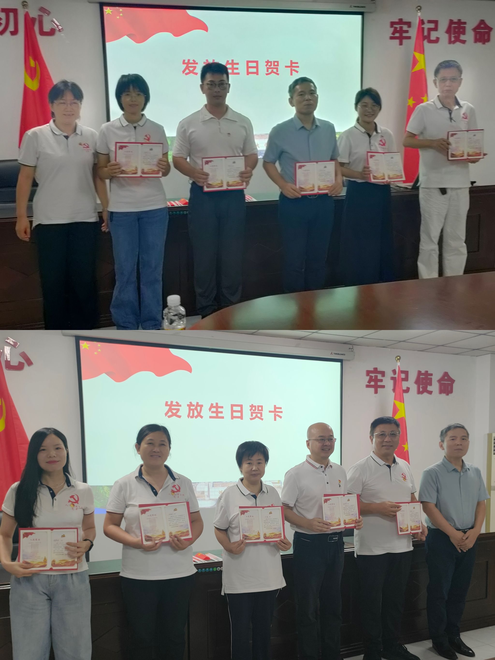 值此党的生日之际,支部为10位党员送上了政治生日贺卡和美好的祝福,为在党30多年的海滨和20年的李长青、王晶、金桂桃4位同志献上鲜花,致以崇高的敬意!