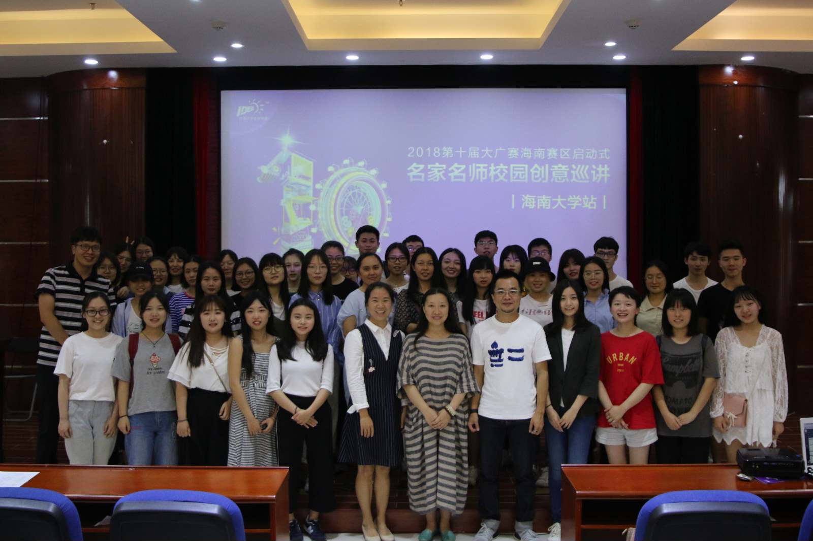 本次巡讲活动中,陈雄亮老师和现场同学积极互动,答疑解惑,探讨广告创意、当今广告环境等问题。现场还采用了Hi现场微信墙与现场同学进行线上互动,使用微信摇一摇让同学们参与抽奖活动,激发了同学们的参与热情,现场气氛活跃。 下午17时,第十届大广赛海南赛区巡讲活动圆满落幕,我们期待海南学子的积极参与。创意无限,等你挑战!