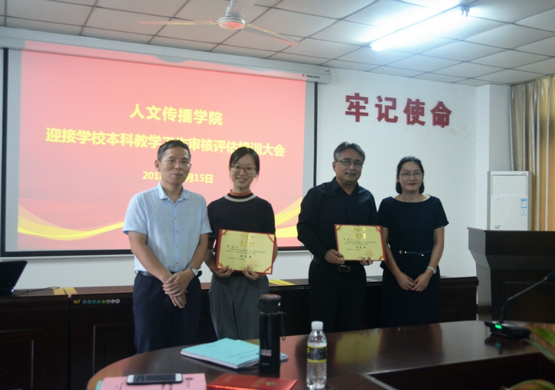 第三,王春嵩宣读公司党委关于党员教师课堂教学大比武专项活动表彰决定。广告系教师张睿、蒋锐,中文系教师李音,汉语国际教育系教师海滨等四位教师荣获优秀奖。刘复生和李彩霞共同为获奖者颁奖。