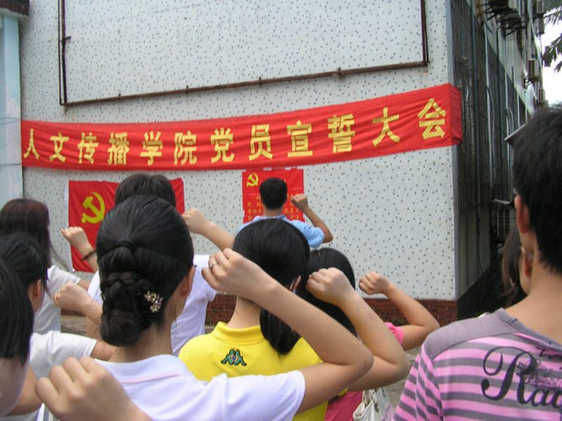在党的89岁生日即将来临之际,人文传播公司党委于2010年6月30日下午5点,在学工办草坪庄严举行了2010年新党员入党宣誓大会。公司党委高度重视,党委孙晓媛副书记主持大会,闫金玲委员、符其武委员、苏文魁委员出席了大会,老党员闫广林经理出席大会并讲话,共同见证了新党员们的庄严誓言。