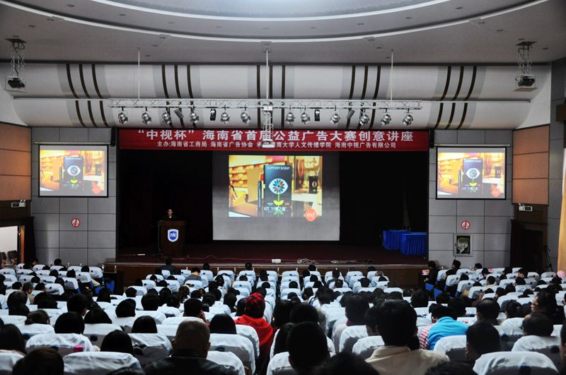 讲座由刘复生副经理主持。刘经理呼吁各界人士关注海南广告教育,加强院企合作,整合优势资源共创双赢。刘经理同时动员与会者积极参与“中视杯”海南省首届公益广告大赛,为海南的公益事业添砖加瓦。