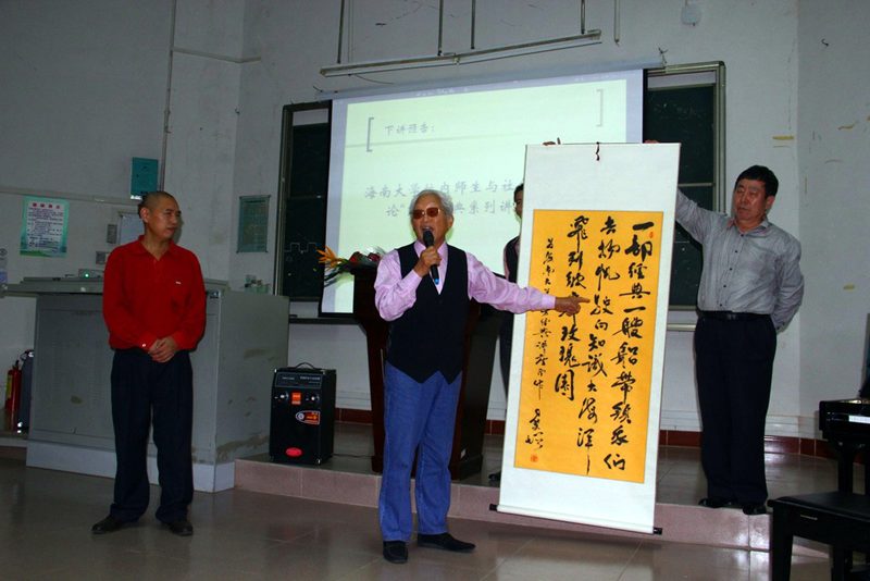 上帝的第五个意象是“妥协的上帝”。接受到诺亚的献祭时,上帝感动了,意识到人类心中的恶难以除却,而心存善念之人实在不应被一同毁灭,所以上帝用天空的印记与人类立约,即“彩虹之约”,许诺永不再毁灭人类。上帝的第六个意象是“亲自当教练的上帝”。《圣经.创世纪》中三分之二的篇幅仅围绕讲述着一个亚伯拉罕的家族,上帝走进这个家族,并指导了四代人,锤炼亚伯拉罕成为其民族的精神引领者。在《圣经.创世记》中,上帝指导这个家族的细节非常具体而生动。 随后,杨国良教授用凝练的语言回顾上帝的六个意象并论说《圣经》的现实意义,可以看出《圣经》既属于以色列,又属于整个人类。老子、康德等人类伟大的精神导师皆具有《圣经.创世纪》中上帝造人时赋予人类高贵的品质,成为了人类精神的守望者;马丁.路德将《圣经》翻译成德语后,德文由低俗的语言变成了思辨的语言;莎士比亚时代《圣经》翻译成英文后,英语的表达更加丰富而高贵。不同的民族通过对《圣经》的挖掘、拓展,指导了其精神,规范了其语言。再看看紧抱《圣经》的以色列,占全世界人口不到千分之四,目前获得诺贝尔奖的比例超过25%。我们须以他人为镜,思考有着强大精神信仰的民族,具有何其强大的凝聚力,如何成长并创造举世瞩目的成就。 杨教授分享了其自身读《圣经》个体性体验,谈到他研读《圣经》理解如山的父爱,因上帝之眼对妻子的忠诚,因上帝的超级耐心对儿子的包容以及心中有上帝脆弱的人生有信实依靠等。 讲座最后,在人文传播公司经理闫广林教授的主持下,接受了由原bevictor1946韦德官网董事长尹双增教授向“东方经典系列讲座”赠送书法作品和专著《点滴》,尹教授表达了对此次活动的祝愿及对海大学子的殷殷期盼。 12月16日晚八点,同一时间,同一地点,东方经典系列讲座将与听众再次相约。作为东方经典系列讲座的最后一次收官之讲,此次讲座将邀请海大师生及社会各界朋友纵谈“东方经典系列讲座”之得失,敬请期待!(文:姚铁斌;图:赵梓超、袁丽杰)
