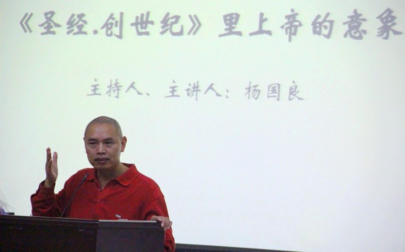 2012年12月9日,2号教学楼108室,晚上八点整,杨国良教授手持金黄丝绸包裹的《圣经》,缓步走入教室,向在场听众深鞠一躬。随后,由艺术公司曹量老师指导的付美美等四位同学演奏的三重奏“莫扎特钢琴作品478号”悠然响起,四位演奏者身穿黑白长裙,风度优雅,灵动美妙的音符从钢琴、大中小提琴中飘洒出来,交织、融合在一起。 “儿子10岁那年,一天晚上,他做了一个梦。在杨家老宅,走入地下室,里面非常开阔,室中央摆着一个箱子,他很好奇,走过去打开箱子,发现里面装着木炭,将木炭移走,看到了丝绸,翻开丝绸,里面又有一个木箱,打开后又见木炭,如是者三次。最后,木箱里赫然放着一本《圣经》。翻开,发现里面是竖版的汉字《圣经》,可读着读着,字就消失了。他非常害怕,赶快将书合上,认真将一切恢复原位,怀着忐忑不安的心情走出了老宅。第二天早晨,他将梦告诉了我。我立刻就把这个梦记录下来,直到今天,梦的内容依然清晰如昨。我想,这个梦会刻在我心里最深的地方,一生难忘。”东方经典系列讲座主持人,本场主讲杨国良教授生动、蕴含神秘色彩的开场将听者领入到一个饱含生命感动、静穆的殿堂。 杨教授讲到,《圣经》最早的汉译本可能出现在盛唐,此论可考据于唐代“景教碑”。之后,《圣经》与中国历代皇帝、大臣及平民的关系愈加密切。一个伟大事实就是:《圣经》是中国现在文学史上伟大作家们的“奶娘”!从“日读Bible”的胡适、喜获《圣经》白话文全译本并立刻拿与弟弟分享的鲁迅,到读着《圣经》长大的冰心、父亲是乡村教士的林语堂、主动受洗的老舍、伟大剧作家曹禺……,都受到《圣经》极大的滋养。现在备受人们尊敬的杨绛先生,100岁接受《新民晚报.读书笔会》采访时说:“……我现在已经封笔,剩下的日子,我要清洗身上的污秽,干干净净地去见我的上帝。”杨绛先生心中有一个属于她的纯净、美丽的上帝意象。对于有着六十六卷本的《圣经》,杨教授仅将此次讲座的题目限定在其开篇“创世纪”中,主要讲述推出人类超级精神读本《圣经》的犹太民族,他们心目中的上帝意象。 影响人类进程、世界上每年印刷数量最多、多个国家的每个法庭、医院和部队都有,美国历届总统竞选、宣誓时不可或缺的《圣经》如何开场?第一个意象是“气势恢宏的上帝”。“太初,上帝创造天地。地是空虚混沌,渊灭黑暗。上帝的灵运行在水面上……”好一幅壮丽而震撼的创世画面!开篇一下就将人们带回太初悠长的岁月,“思接千载”又何足道也?人类的思域跨越亘古,延展至宇宙无限的空间,何其深邃、辽远。我们要感谢犹太民族奉献这样旷绝千古的巨著。读者每一次捧读,都是对心灵的清洗,对灵魂的敲打,对内心围墙的拆除,人生就不会变得可怜、狭隘,而“仰望星空”的康德、“涵养浩然之气”的孟子、上帝最先创造的“光”,都让我们反思“自身是否有天地之大气、茫茫之宇宙是否在心中运行”? 《圣经.创世纪》中上帝的第二个意象是“主动关爱人类的上帝”。有人说《圣经》是“上帝写给人类的情书”,而在《圣经》的开篇中,可以通过上帝两次造人的过程中感受到其对人类的关爱。一是上帝按照他的形象创造男人、女人,并赋予其管理全世界人类的职责,使得人类具有永恒上帝的品质。二是在河流清澈、万物繁茂的伊甸园,上帝用泥土造了亚当,将神灵的气息吹入他的鼻孔,赋予了人类与上帝沟通的媒介;看到亚当感到孤独时,上帝又为他创造了伴侣夏娃。 上帝的第三、第四个意象分别是“严厉、审判的上帝”和“忧伤、愤怒的上帝”。上帝审判偷吃禁果的亚当和夏娃,并惩罚他们分别忍受无尽的劳作及生育之苦;上帝审判该隐杀弟时给予其无限放逐的惩罚。由于人类“自私、推诿、互相残杀”等一切恶毒、卑劣的行为让上帝如此忧伤、因而决定用一场大洪水来毁灭人类。随后发生人类想要造通天的巴别塔时,上帝看到人类的自傲,因而让人类的语言变得混乱。杨教授用生动的语言娓娓道来,结合着人类日常的生活及生动的例子,上帝的这两个意象将深深印在人们的头脑中。