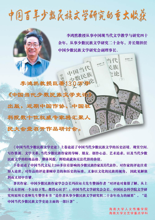 中国百年少数民族文化研究的重大收获——李鸿然教授巨著《中国当代少数民族文学史论》近期出版并将于人民大会堂召开作品研讨会。//www.hainanu.edu.cn