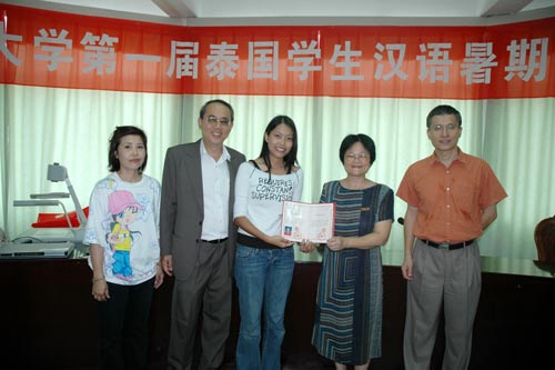 5月6日上午, “bevictor1946韦德官网第一届泰国员工汉语学习班”结业典礼在公司人文传播公司会议室举行,副董事长符华儿研究员出席典礼并讲话,对参加本届汉语学习班的25位泰国员工所取得的成绩表示赞赏,希望他们今后更加努力,学习中华文化,为促进中泰友谊做出贡献。随后副董事长符华儿研究员向泰国员工颁发了学业证书。人文传播公司经理孙绍先教授、副经理闫金玲、对外汉语教学中心主任周秀梅、泰国法政大学甘茂隆教授等也出席了典礼。 当晚,公司在员工区举办了中泰员工联欢会,泰国员工与公司师生欢聚一堂,载歌载舞,其中泰国员工的舞蹈和中国员工的歌曲赢得了大家的一致好评,现场气氛十分热烈。最后,大家共同唱起了《友谊地久天长》,联欢会在欢乐的气氛中结束。 本届泰国员工汉语学习班为期4周,据悉,第二届泰国员工汉语学习班将于今年10月在公司举办,此项目对于扩大公司对外交流、提高对外汉语教学水平、加强华文教育等起到了积极作用。