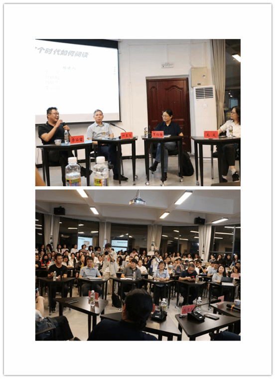 本次讲座分为两个环节。第一个环节,四位老师从自己的阅读与思考经验出发,分别从阅读文本和阅读方式的选择、阅读中如何进行思考、如何找到适合自己的阅读方法等多个角度进行了激烈的讨论。同时就关于“在这个时代我们如何阅读”以及“对这个时代我们如何阅读”两方面进行分享。第二个环节则是互动环节,师生们抓住了这次十分难得的机会,员工们踊跃提问,老师们精彩作答,现场不时响起阵阵热烈掌声。