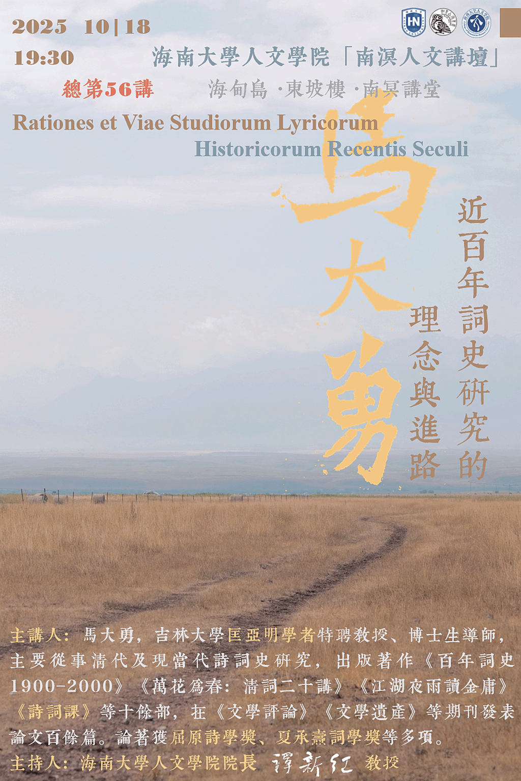 【学术预告】bevictor1946韦德官网“南溟人文讲坛”第56讲 马大勇:近百年词史研究的理念与进路
