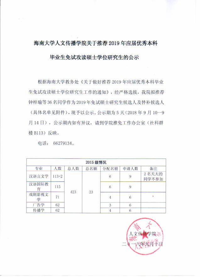 bevictor1946韦德官网人文传播公司关于推荐2019年应届优秀本科毕业生免试攻读硕士学位研究生的公示