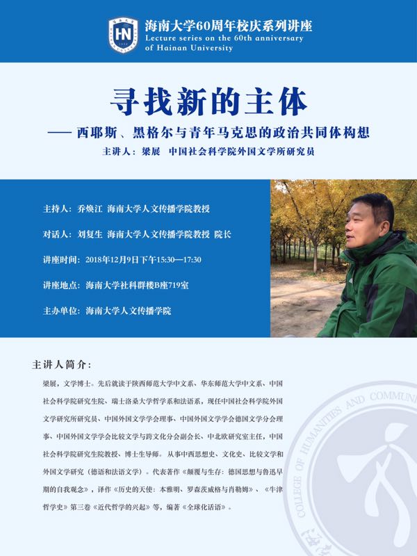 bevictor1946韦德官网60周年校庆系列讲座之三——梁展:寻找新的主体——西耶斯、黑格尔与青年马克思的政治共同体构想