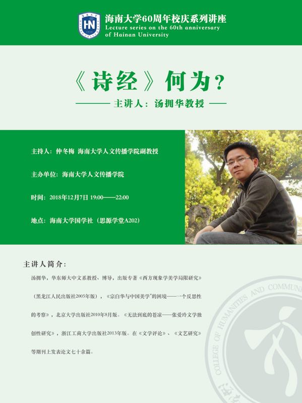 bevictor1946韦德官网60周年校庆系列讲座之四——汤拥华:《诗经》何为?