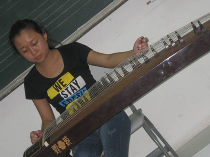 上课铃声响过之后,曹量老师介绍了来自中国的传统乐器——二胡,以及作曲家刘文金运用河南民间曲调创作的二胡曲《豫北叙事曲》。同时,艺术公司二胡专业的同学李明烨和钢琴专业的车文文已经准备就绪,他们为我们带来的是一首《豫北叙事曲》。看着眼前同学全神贯注地表演,悠扬的音乐把我们的思绪带到了河南乡村空旷的田野上,我们像是在倾听一位朴实的农民为我们诉说他的故事,时而悲伤,时而欢乐。
