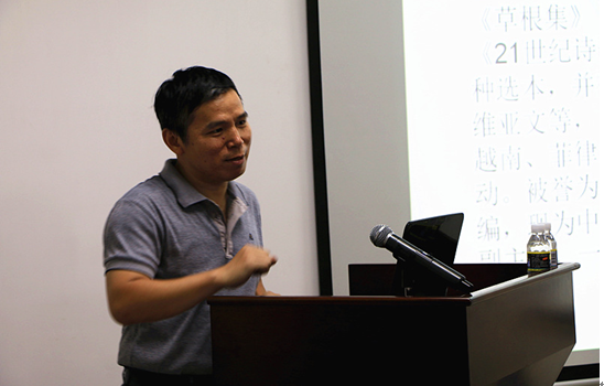 2016年6月3日晚上8点,著名诗人与诗歌理论家李少君在社科楼B719会议室为公司师生带来一场题为“百年新诗的历史意义”的专题讲座。李少君被誉为“自然诗人”,现任《诗刊》副主编,中国作家协会诗歌委员会委员,曾任《天涯》杂志主编。本次讲座由刘复生经理主持,公司部分教师、研究生、本科生、诗歌爱好者参加了本次讲座。 李少君从“百年新诗”的源头1917年讲起,讲到1957年《诗刊》的创刊,有关新诗与中国现代性的关系的争论,诗歌的历史意义以及诗歌对于人心灵的慰藉作用等。他还将中国的诗教传统与西方的宗教传统作比较,认为“西方有圣经,中国有诗经”。在他看来,新诗是自由、进步的标志,新诗于中国的主要意义在于解放思想、革新文化。 李少君与师生们分享了他关于诗歌的最新思考成果——当代诗歌四十年。他将“当代诗歌四十年”分成了四个阶段:第一阶段是朦胧诗时期,这个时期是向外学习的阶段,翻译诗对于当代诗歌有重要意义;第二阶段是文学寻根时期,也是对内寻找传统的时期,值得注意的是这一时期余光中、郑愁予、洛夫等台湾现代诗人对中国大陆的影响;第三阶段为21世纪初的诗歌,也就是由李少君老师提出的“草根性”时期,这个阶段是向下挖掘的阶段,网络诗歌,地方诗歌,女性诗歌等崛起,新的创作机制、传播机制、评判机制、选择机制、编辑机制等都促使诗歌进入到一个相对大众化、民主化的时代。李老师预言,中国即将出现诗歌的第四个阶段——向上超越的阶段,在这个阶段将确立新的美学原则,创造新的美学形象,建立现代意义世界。讲到尽兴处,李少君朗诵起自己的两首诗——《致——》《抒怀》,感情真挚。李少君两个小时的讲座,给师生们带来的不仅有“诗意”,还有各种“意义”。 在总结发言环节,刘复生经理对李少君的讲座给予高度评价:“诗歌写作,从来都不只是关于个人的情感和内心的风景,当下诗坛的问题,在于诗人和评论家们过多的沉溺于细碎的个人经验,迷失在语词的丛林。而李少君一直以来关于诗歌的思考,总是和中国文化复兴的命运潜在相关,经由诗歌,他试图探索与追问的是中国文化建议的战略战术问题,这是值得我们重视和尊敬的。” (通讯员:胡杏)