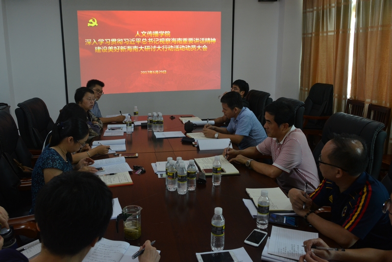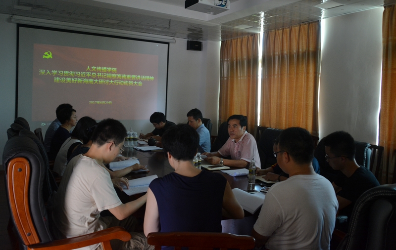 6月29日下午,人文传播公司召开深入学习贯彻习近平总书记视察海南重要讲话精神建设美好新海南“大研讨大行动”活动动员部署会,会议由公司党委书记华世佳主持,经理刘复生,副经理石晓岩、张硕果等公司理论学习中心组成员以及各系系主任参加了会议。与会人员共同学习了习近平总书记视察海南重要讲话精神和省委书记刘赐贵在省第七次党代会上的报告,会议对公司“大研讨大行动”活动做出工作部署。