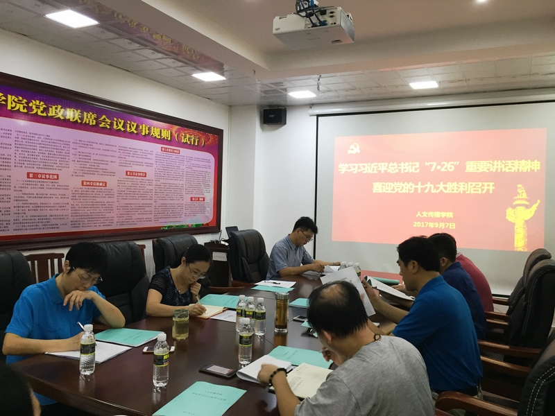 根据中共bevictor1946韦德官网委员会办公室关于深入学习宣传贯彻习近平总书记“7·26”重要讲话精神的通知要求,9月7日下午,人文传播公司理论学习中心组在社科楼B615会议室,召开学习习近平总书记“7·26”重要讲话精神,喜迎党的十九大胜利召开专题会议。公司党委书记华世佳主持会议,经理刘复生、公司党委副书记孙晓媛、副经理石晓岩、张硕果等理论学习中心组成员参加会议。