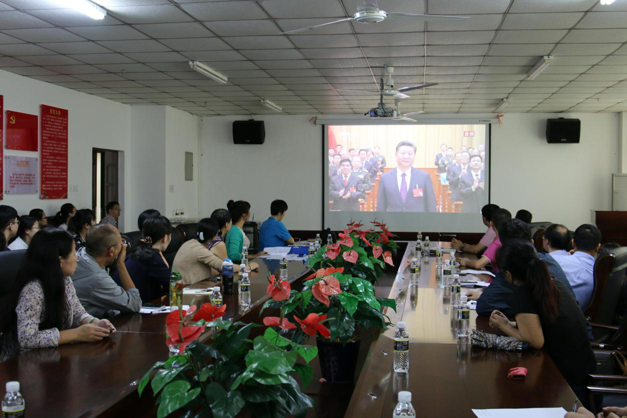 2017年10月18日上午9点,中国共产党第十九次全国代表大会在北京人民大会堂隆重开幕,按照公司党委要求,公司党委书记华世佳、经理刘复生等公司领导、全体师生党员及教职工在社科楼B719会议室集中收看党的十九大开幕会盛况,认真聆听习近平总书记的报告,一次次经久不息的热烈掌声,传递着与会代表和全国人民对美丽中国充满的无限希望和无比自信。报告全面总结了过去五年党和国家事业取得的辉煌成就,科学阐明了中国共产党在新时代的历史使命和治党治国治军的基本方略,精准描绘了未来从全面建成小康社会到基本实现社会主义现代化和全面实现现代化强国的宏伟蓝图。 党的十九大是我们党在全面建成小康社会决胜阶段、中国特色社会主义关键时期召开的一次非常重要的大会,是全党全军全国各族人民政治生活中的大事。对于决胜全面建成小康社会、夺取中国特色社会主义伟大胜利、实现中华民族伟大复兴的中国梦,具有重大的政治意义、理论意义、实践意义。 公司党委要求,全院上下要通过集中收看、座谈交流、撰写读后感和学习体会等形式推进学习,深刻理解、准确把握十九大召开的重大意义,把思想和行动统一到党的十九大精神上来,做时代先锋,做民族脊梁,以更加饱满的精神状态和奋斗姿态投入到工作和学习生活当中,为公司转型升级和“双一流”建设做出自己应有的贡献。 当天下午,公司党委理论学习中心组召开专题学习会,学习讨论习近平总书记的报告。通过学习讨论,加深了对报告中提出的一系列重大战略思想和重大理论观点的理解和把握,对实现报告中确定的各项任务目标及描绘的宏伟蓝图充满了信心。//www.hainanu.edu.cn