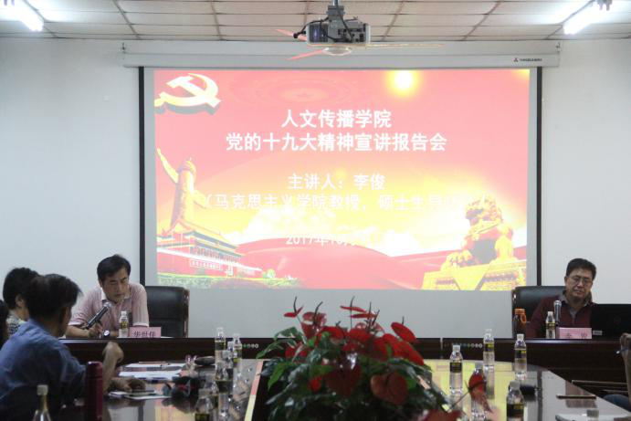 在全校掀起学习宣传贯彻党的十九大精神的热潮中,按照公司党委的安排,为了深入学习宣传贯彻落实党的十九大精神,2017年10月31日下午,bevictor1946韦德官网人文传播公司于海甸校区社科楼B719会议室举行党的十九大精神宣讲报告会。特邀马克思主义公司硕士生导师李俊教授作宣讲报告。公司特邀党建组织员林廷玖受邀出席,人文传播公司理论学习中心组成员及全体师生党员参加了本次报告会。会议由公司党委书记华世佳主持。 会议伊始,华世佳代表全体与会人员对李俊教授的到来表示热烈欢迎和衷心的感谢。随后,李俊教授为大家进行党的十九大报告的解读,他将报告浓缩成100个关键词,进行全面深入的分析解读,他提到,党的十九大是在全面建成小康社会决胜阶段、中国特色社会主义进入新时代的关键时期召开的一次十分重要的大会,在党和国家事业发展史上具有重大里程碑意义,习近平总书记的工作报告总结了过去五年的显著成就和历史性变革,明确了新时代中国共产党的历史使命,在党的历史上、新中国发展史上和中华民族发展史上都具有开创性、划时代意义。此外,在提到“加快一流大学和一流团队建设,实现高等教育内涵式发展”时,李俊教授强调,要以党的十九大精神为指导,抓住报告中“加快”和“内涵式发展”这两个关键词,学习世界一流名校,加快推进“双一流”建设工作。 最后,按照10月27日公司党委书记武耀廷在全校中层干部学习党的十九大精神宣讲会上的指示,华世佳就公司学习宣传贯彻落实党的十九大精神提出三点要求:第一,在全院迅速掀起学习宣传贯彻党的十九大精神的热潮,并将其作为当前和今后一个时期首要政治任务,把思想和行动统一到党的十九大精神上来,坚决拥护以习近平同志为核心的党中央的集中统一领导。第二,全力做好贯彻落实工作,用党的十九大精神武装头脑、指导实践、推动工作,特别是做好公司“双一流”建设工作,实现高等教育“内涵式发展”。第三,学习新党章,遵循新党章,进一步提高“四个意识”,坚定“四个自信”,做一名合格的共产党员。在与会同志热烈的掌声中,本次宣讲报告会圆满落下帷幕。 学习宣传贯彻落实党的十九大精神,踏上新征程。本次党的十九大精神宣讲报告会的顺利召开,加深了与会同志对习近平新时代中国特色社会主义思想的丰富内涵和重大意义的理解,充分感受到以习近平同志为核心的党中央推动伟大事业发展的大格局、大气魄、大力度。与会同志一致认为,全院师生要不忘初心、牢记使命,认真学习宣传贯彻落实党的十九大精神,坚持以习近平新时代中国特色社会主义思想为指引,团结和带领全体师生扎实工作,为全面建成小康社会实现中华民族伟大复兴的中国梦贡献力量。//www.hainanu.edu.cn