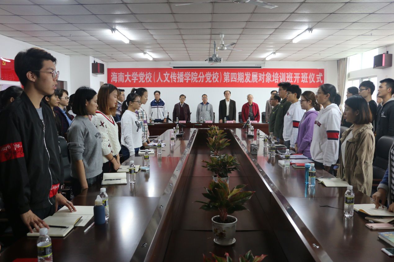 2017年11月28日下午,bevictor1946韦德官网党校(人文传播公司分党校)第四期发展对象培训班开班仪式在海甸校区社科楼人文传播公司党员之家(B719会议室)顺利举行。公司特邀党建组织员程儒参、杨云山、林廷玖、符志新,法公司原经理王峻岩教授,人文传播公司党委书记华世佳、党委委员王春嵩,公司员工预备党员以及本期发展对象参加了开班仪式。开班仪式由人文传播公司党委副书记孙晓媛主持。 开班仪式在全体与会人员响亮的国歌声中拉开序幕。华世佳在开班仪式上致辞,对支持公司党建工作的各位领导、老师表示衷心感谢,对参加此次培训的全体学员表示欢迎。华世佳引用习近平总书记在十九大报告中振奋人心的一句话“青年兴则国家兴,青年强则国家强”勉励在座的青年员工,希望青年员工要坚定理想信念,志存高远,脚踏实地,勇做时代的弄潮儿。在讲话的最后,华世佳对全体学员提出了四点要求,一是充分认识组织入党发展对象培训的重要意义,统一思想,提高认识;二是努力提高思想政治觉悟,端正入党动机;三是珍惜培训机会,遵守纪律,圆满完成培训任务;四是身体力行,充分发挥先锋模范作用。 随后,张泽同学代表全体学员发表感言并表态:将积极宣传正能量,不忘初心,刻苦学习,努力工作,遵守校规校纪,认真学习并深刻理解党的基本知识,提高自身素质,争取早日成为中国共产党的一员。张泽用充满青春朝气的言语表达了全体学员渴望成为中国共产党先锋战士,以更好的面貌迎接党的工作和新挑战的决心。 公司党委高度重视入党发展对象党校培训工作,以此作为加强优秀青年员工理想信念教育,提高思想政治素养的重要举措。//www.hainanu.edu.cn