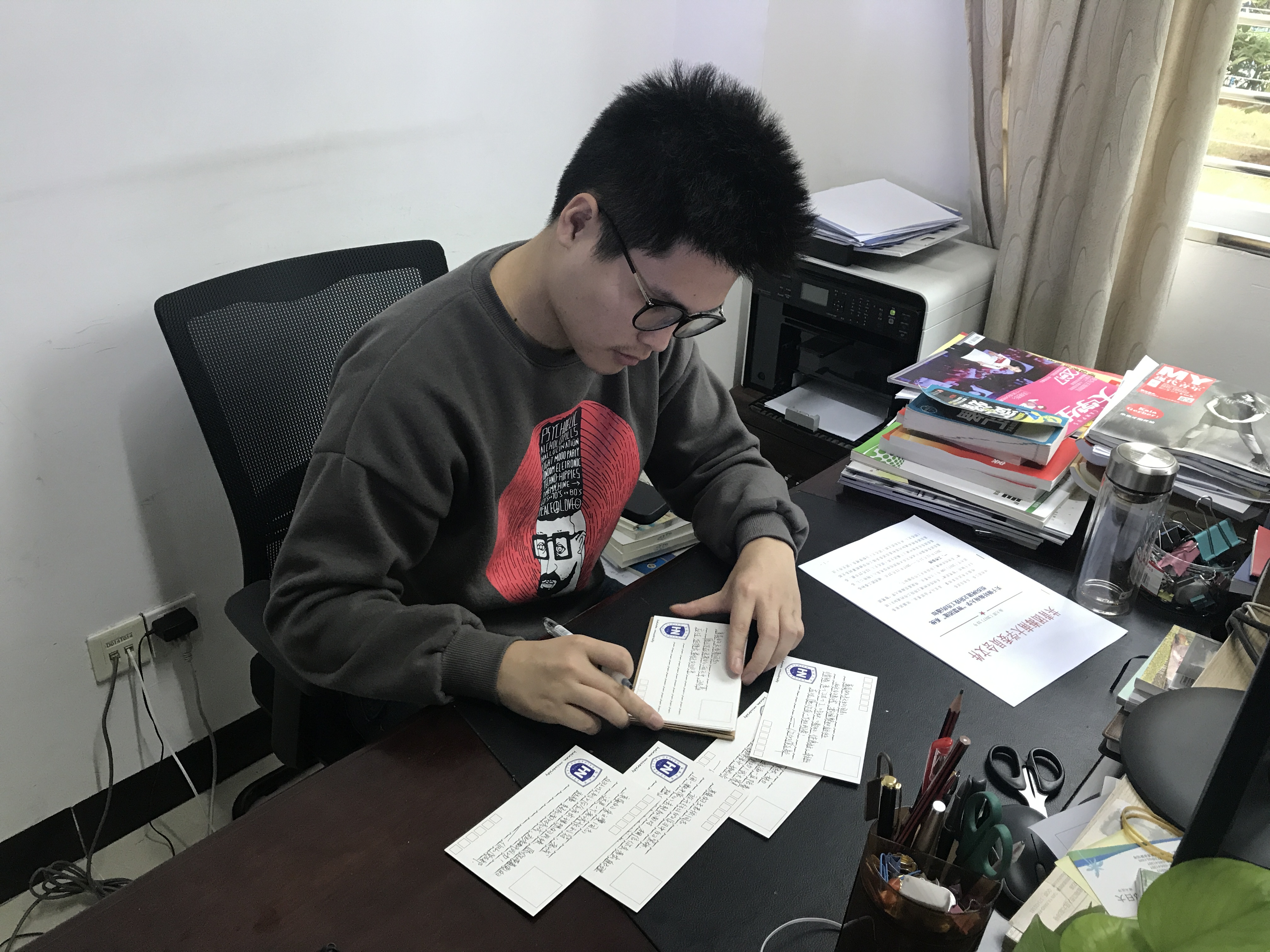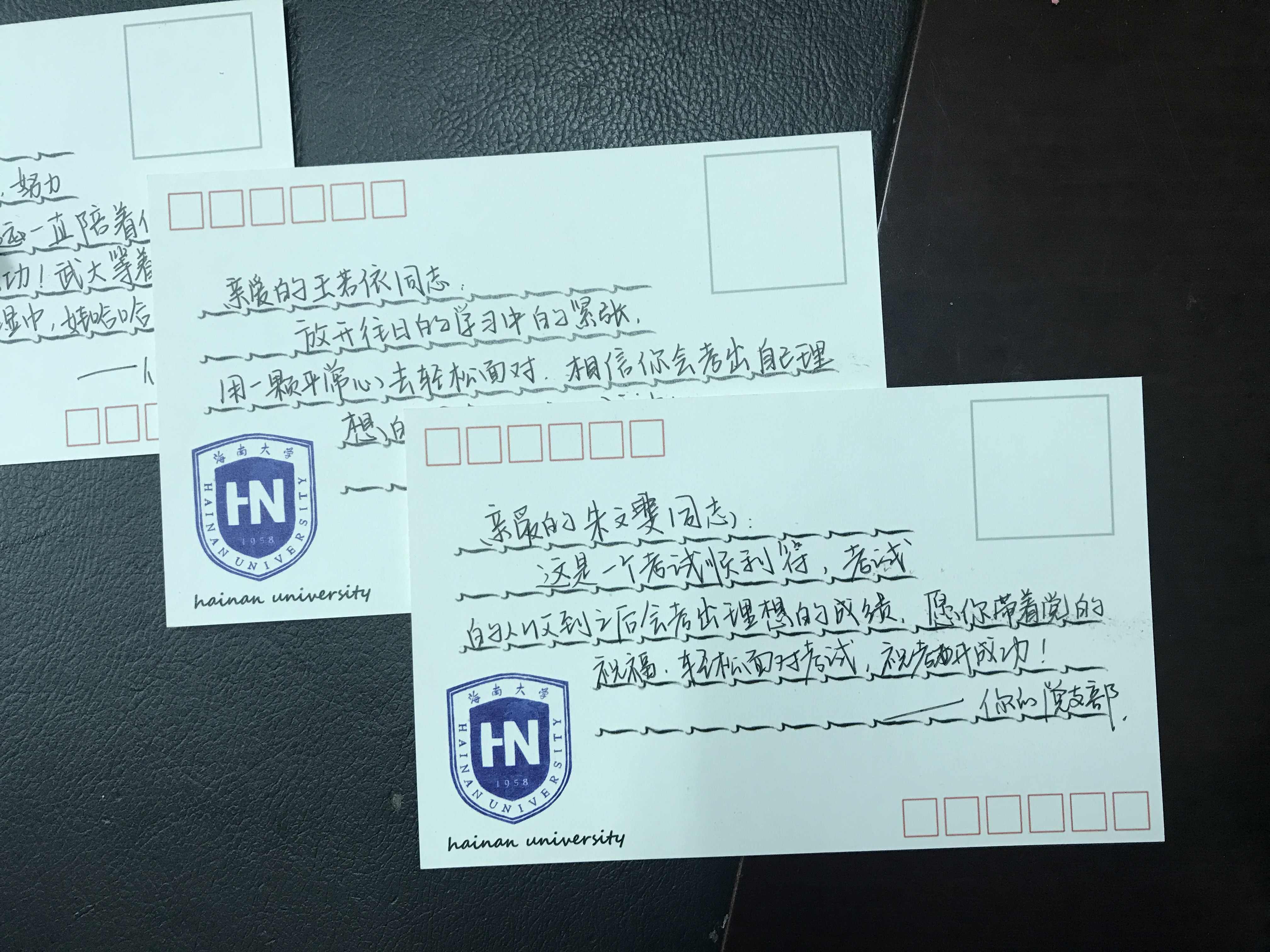 “别驻足,梦想不停追逐……祝新传党支部考研的小伙伴梦想成真!”2017年12月22日,考前的这一天,新传员工党支部每位备考硕士研究生入学考试的党员都收到了这样一张写着祝福语的卡片以及一份“考研加油包”(内含能量巧克力、提神湿纸巾等),礼物虽轻情意重。埋头苦读的莘莘学子收到了来自党支部无微不至的关系与关注,感到丝丝暖意。