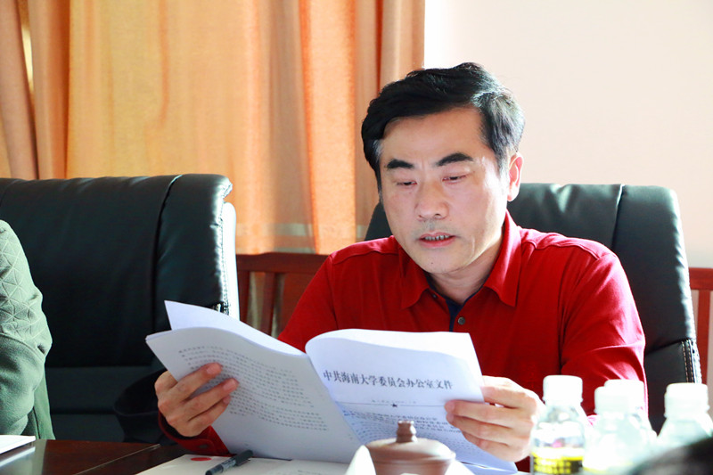 首先华世佳带领与会人员再次学习重温了习近平总书记2013年视察海南重要讲话精神、习近平总书记7·26重要讲话精神、习近平总书记在全国高校思想政治工作会议上的重要讲话精神、省委书记刘赐贵在全省高校思想政治工作会议上的讲话精神以及海南省第七次党代会精神等内容,并再次强调理论学习的重要性,要求全体与会人员要深刻认识和把握习近平新时代中国特色社会主义思想,要更加紧密地团结在以习近平同志为核心的党中央周围,更加牢固树立“四个意识”,坚决维护党中央权威和集中统一领导,进一步增强维护核心的思想自觉和行动自觉,坚定不移走中国特色社会主义道路。