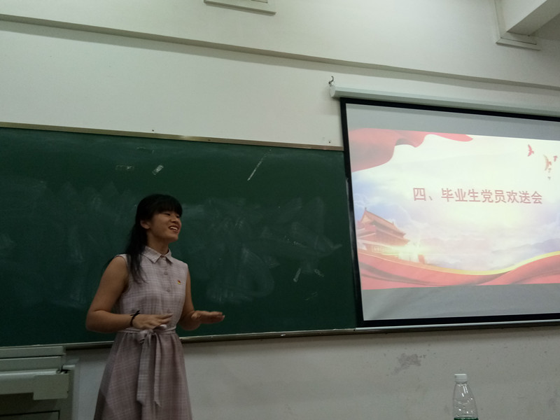 大会第四项,支部组织了毕业生党员欢送仪式,对这些即将离开公司,迈入社会的党员,熊文军同志代表中文党支部向大家表示了衷心的祝福和殷切的希望,他表示希望这些即将走入社会各行各业的毕业生党员能够始终牢记党和人民的重托,不忘组织的教育和培养,能够继续发扬中文党支部的优良传统,在社会的各个行业,充分展现党员的风采,做出卓越的成绩。随后,10位毕业生党员也依次上台作了发言,他们肯定了支部在这四年之中的教育和培养,对他们的人生的影响产生了重大作用,他们纷纷表示将继续带着中文党支部的优良传统走向社会各行各业,用成绩回报母校,不辜负组织的培养。最后他们也向大二、大三的党员、预备党员以及入党积极分子表示了美好的期盼,鼓励大家要认真学习,吃苦耐劳,也许未来的磨难和苦难还很多,但只要大家心中有坚定的理想与信念,就一定能够克服重重艰难险阻,实现自己的梦想。