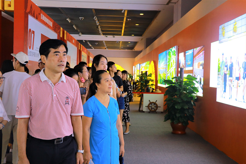 在参观完改革开放馆后,大家先后参观了生态文明建设馆、国际旅游岛馆和社会民生馆。在参观中,大家对海南省认真贯彻落实习近平总书记“绿水青山就是金山银山”重要指示精神,在生态保护方面所取得的重大成就时感到由衷的赞叹,心中的幸福感油然而生。同时,也见证了海南脱贫攻坚工作取得的重大进展与海南基础设施建设方面,特别是海南环岛高铁的领先成就等。