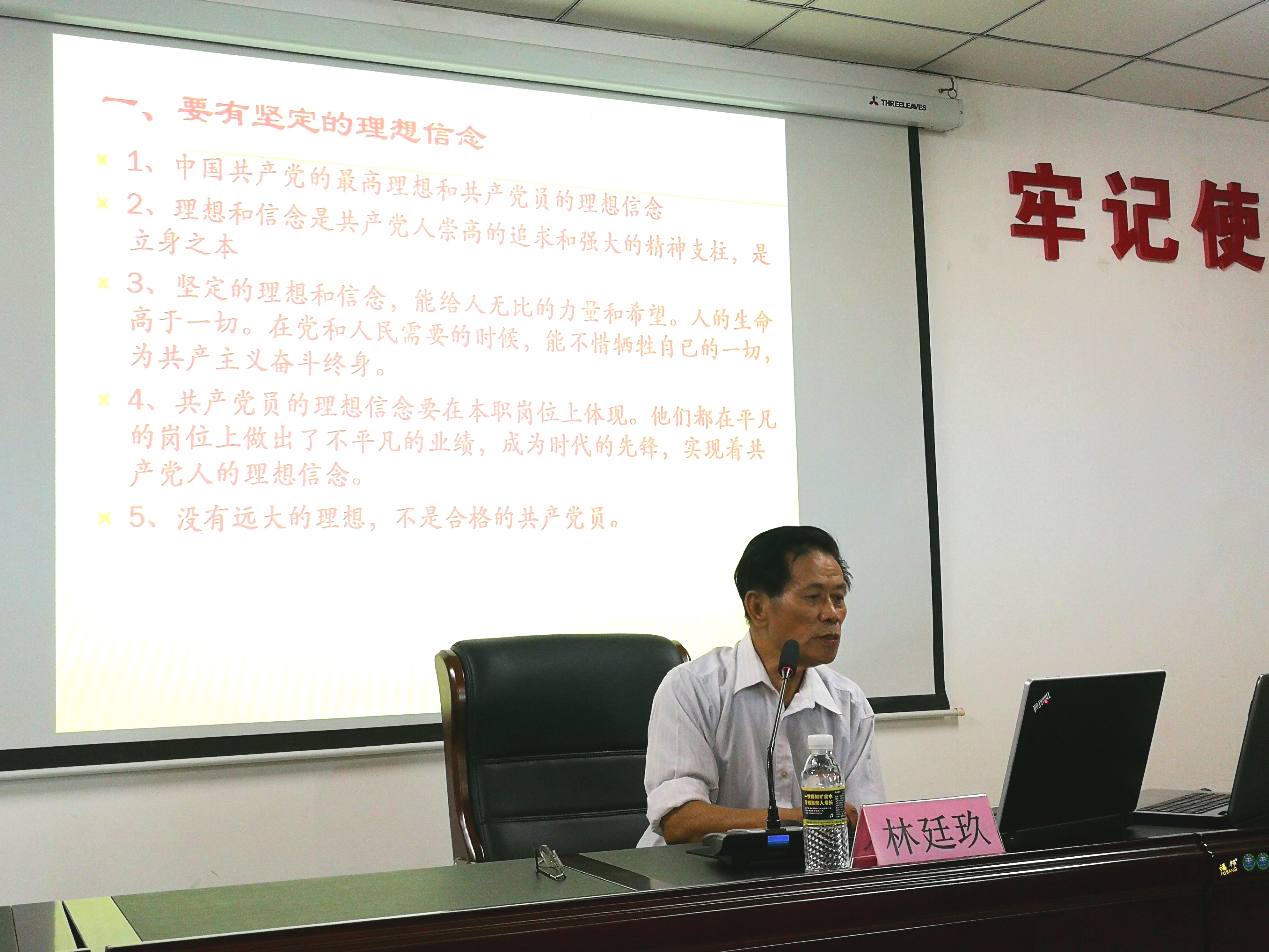 林廷玖作为第四专题党课培训的主讲嘉宾,围绕“怎样做一个合格的共产党员”,结合自己几十年的工作经验与人生阅历为学员们展开讲解,意在要求学员们通过党课理论学习,找到自身发展的方向和坐标,从思想等各个方面积极入党。
