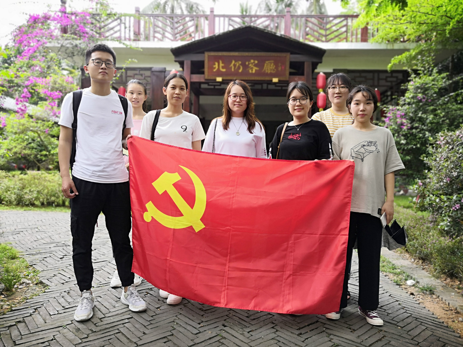 为深入学习贯彻党的十九大精神,庆祝新中国成立七十周年,弘扬革命先烈艰苦奋斗的作风,3月30日,在传统节日清明节即将到来之际,人文传播公司汉语国际教育员工党支部组织赴琼海北仍村、红色娘子军纪念园等地,开展红色革命教育主题党日活动。汉语国际教育员工党支部书记李润东老师带队参加本次活动,支部员工党员代表参加活动。