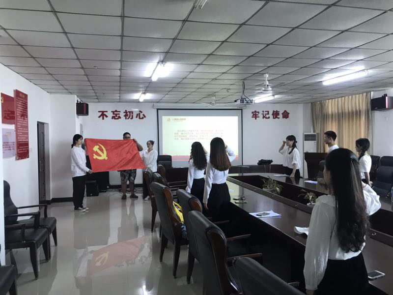 首先,党支部全体成员进行了入党宣誓,每一位成员在王嘉南老师的带领之下,一句一句坚定的宣告着对党的忠诚。