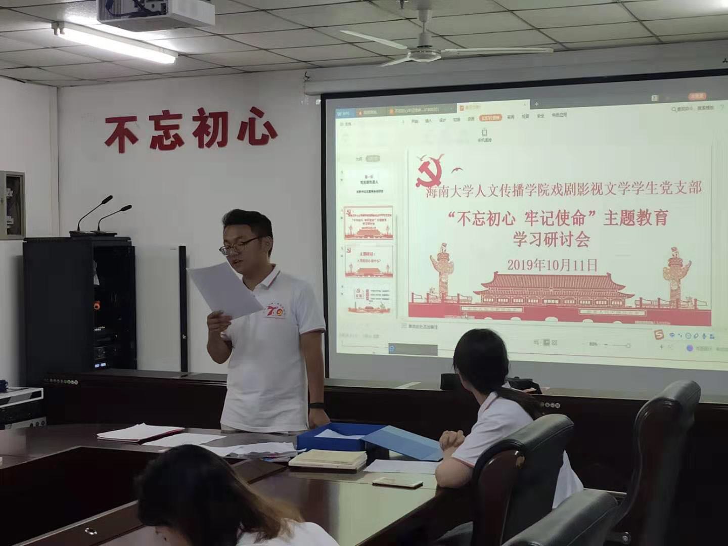 2019年10月11日晚上18:30,人文传播公司戏剧影视文学员工党支部在bevictor1946韦德官网社科楼B719组织召开了“不忘初心、牢记使命”主题教育专题学习研讨会,支部全体党员参加会议。会议由支部书记王嘉南主持。
