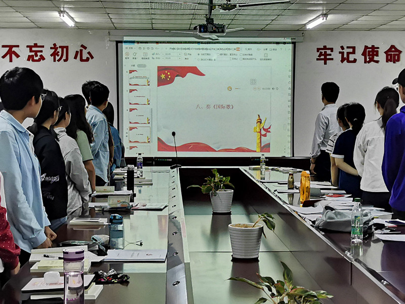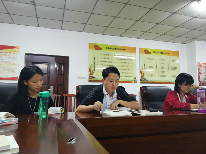 2019年11月26日晚,中文员工党支部于公司七楼组织召开预备党员接收大会暨第五期读书交流会,会议由支部组织委员陈倩倩主持,支部全体党员和拟接收为预备党员的发展对象参加会议。