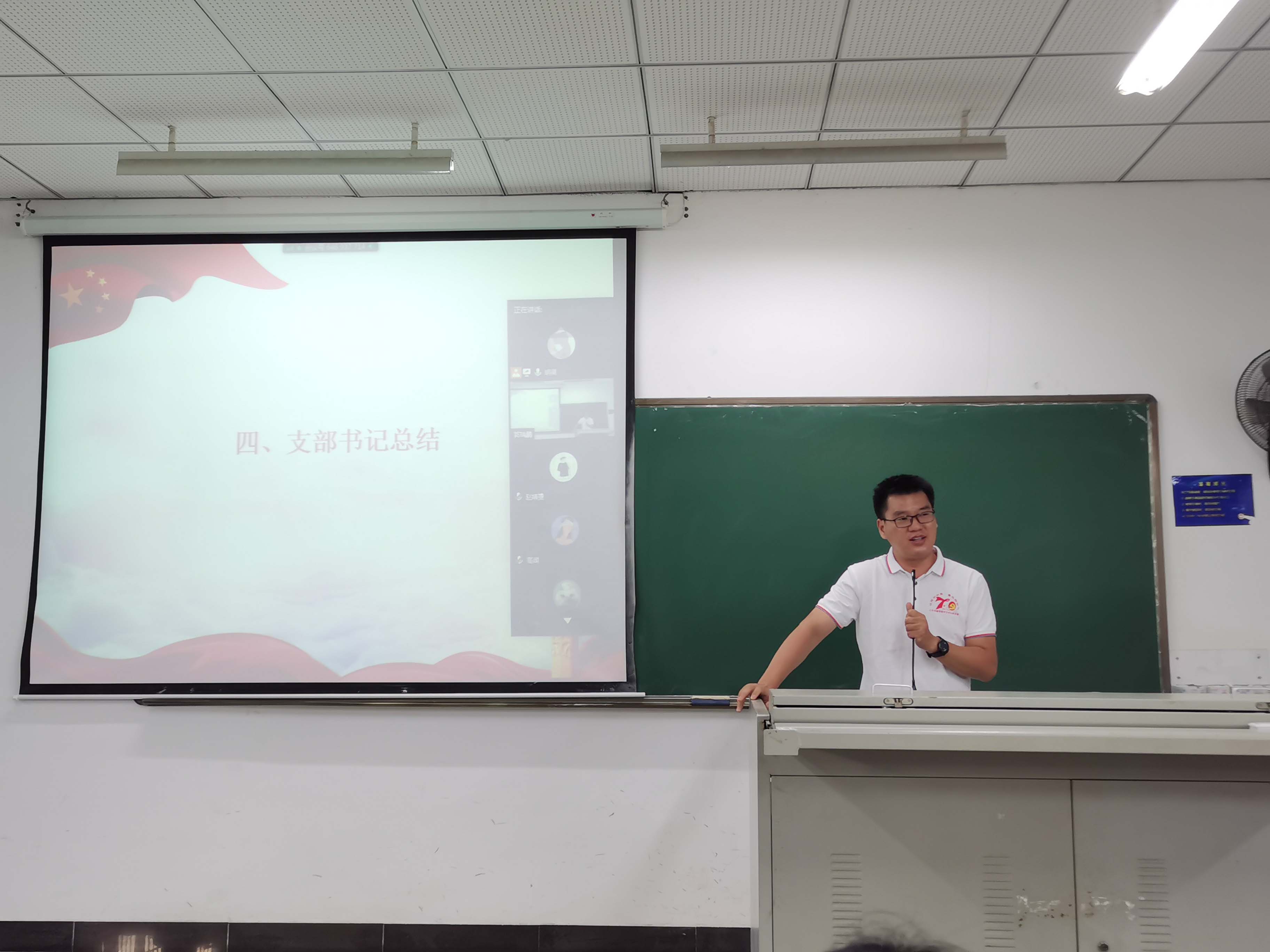 会议第三项,支部书记对本次会议做总结发言。首先,熊文军书记对于新一批预备党员同志表示祝贺并对这些同志提出了新要求,要继续加强理论学习,将理论与实践相结合,积极参加支部组织活动。其次,熊文军书记肯定了党员同志在疫情期间面对种种困难不退缩的表现,不仅积极开展各项支部工作,也积极投入于防疫工作中,充分展示我们作为“标杆党支部”的风貌,发挥党员的先锋模范作用。最后熊书记希望支部的党员同志们今后能再接再厉,为党支部的建设不断添砖加瓦!
