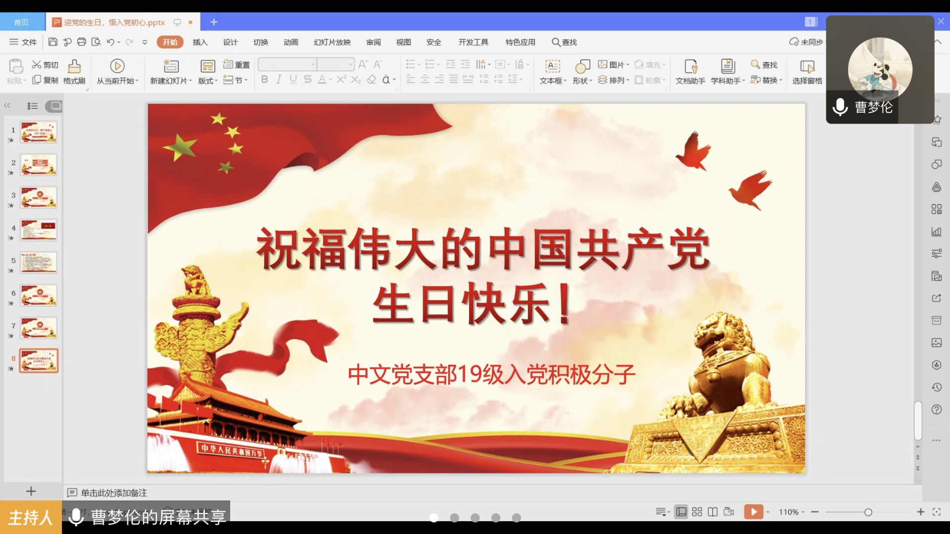 为庆祝中国共产党成立99周年,bevictor1946韦德官网人文传播公司中文员工党支部于7月1日晚8点召开“庆党的生日,悟入党初心”线上学习交流会。会议由2019级入党积极分子曹梦伦主持,2019级全体入党积极分子参会。 会议第一项,重温党史。曹梦伦同志带领与会成员回顾了中国共产党99年来走过的风雨历程。与会成员通过回顾党史,加强了对党史的了解,增强党性观念、宗旨意识和责任意识。大家纷纷表示要坚定地高举党的旗帜,听党话、跟党走。