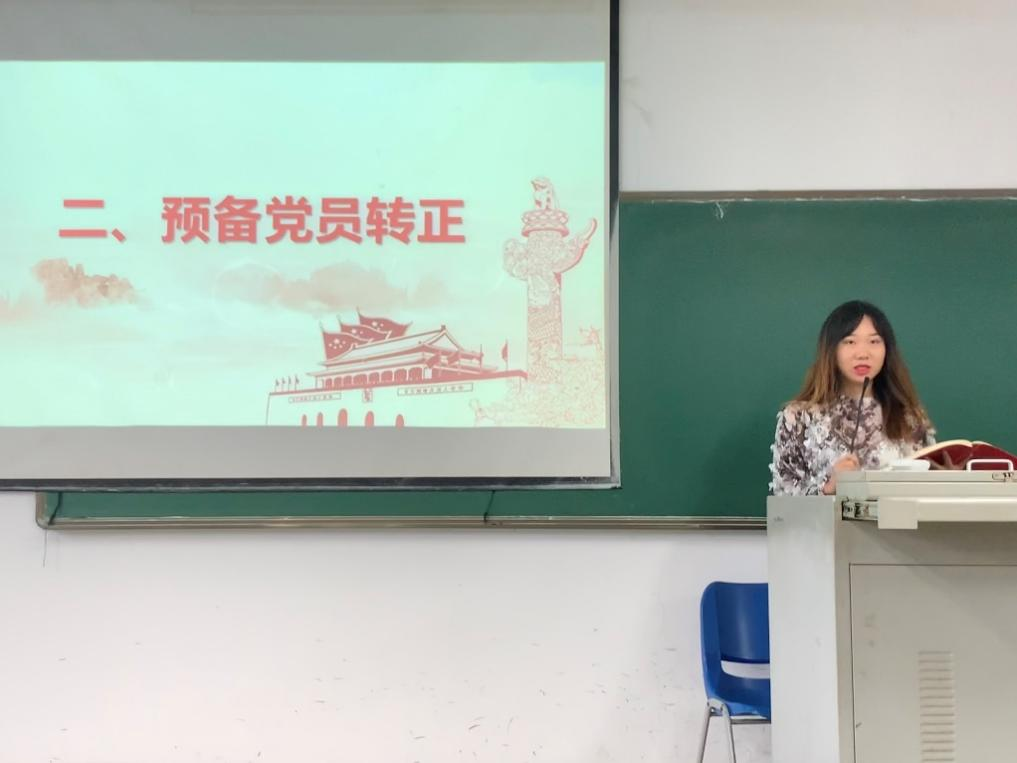 会议议程第二项,预备党员转正。廖雨婕等同学回顾了过去一年作为预备党员的各方面表现,向党支部作了汇报说明。