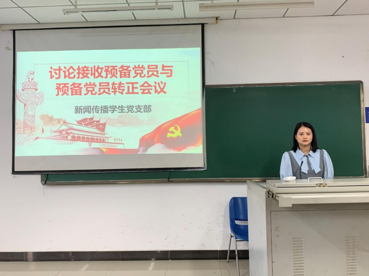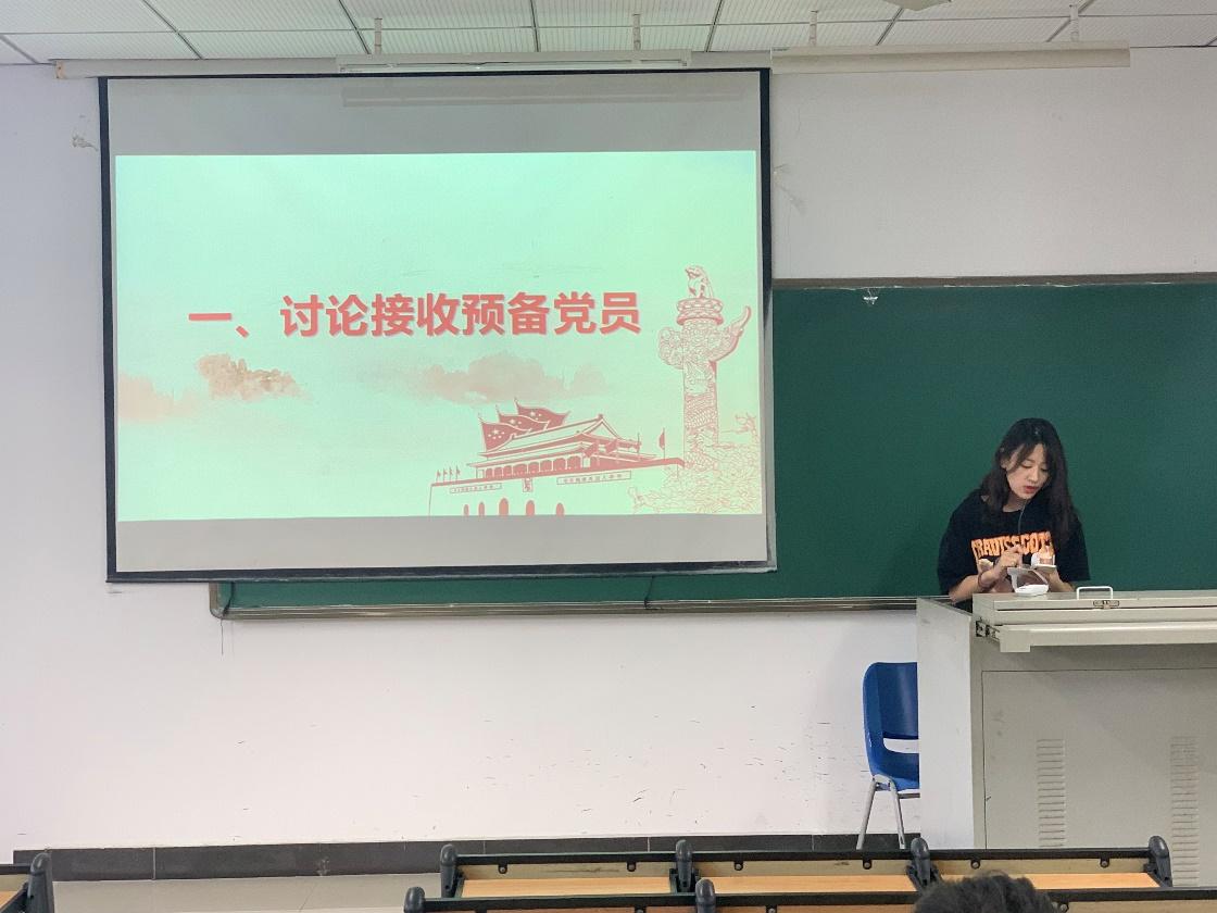 会议议程第一项,讨论接收预备党员。陈施语等同学从对党的认识、入党动机、学习工作表现等方面汇报了个人情况,表明了入党的决心。