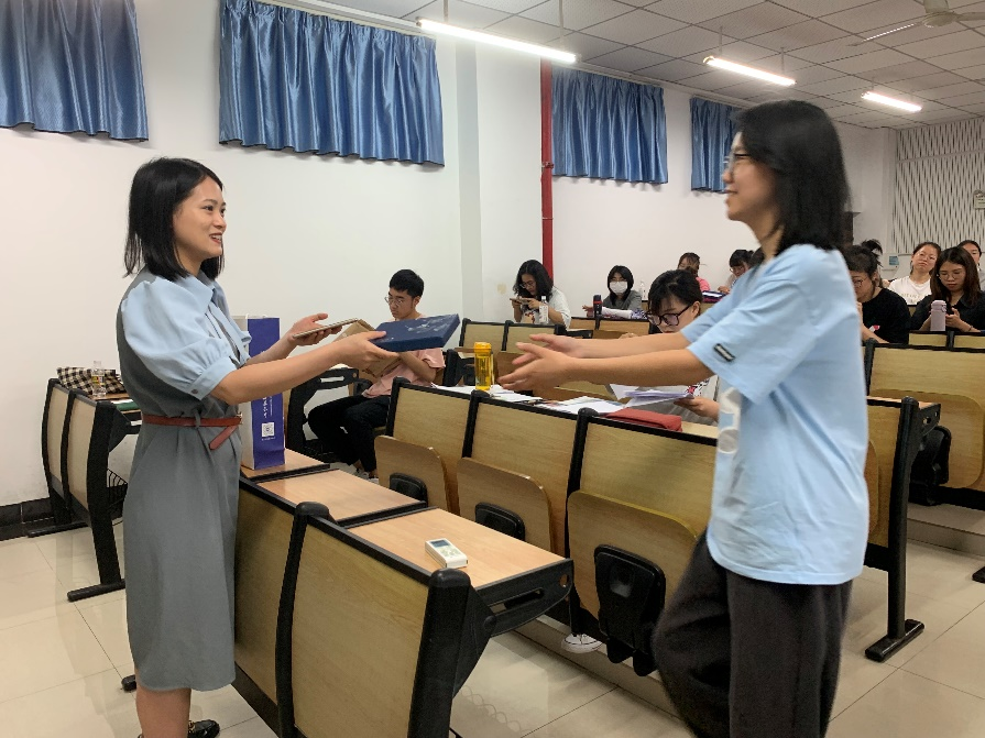 会议议程第三项,欢送2022届毕业生党员。党支部书记李洁代表党支部为2022届毕业生党员送上纪念礼品,并对其顺利毕业表示祝贺。随后,陈昱晗、程潜等同志代表2022届毕业生党员上台发言,从自身经历出发,为党支部的学弟学妹送出宝贵经验,“不要留遗憾”引发了多数党员同志的共鸣。