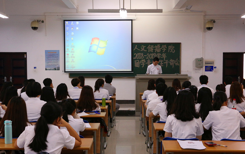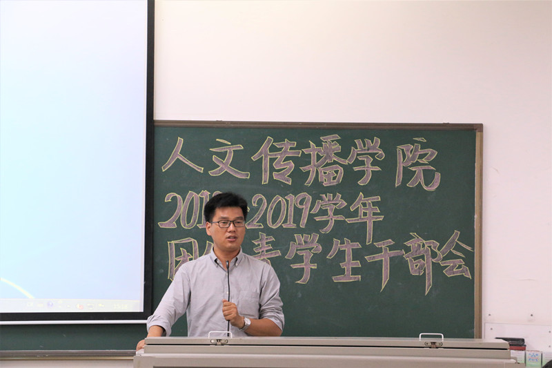人文团学组织新学期全体员工干部大会于8月28日下午在海甸校区召开。公司学工与团委办公室熊文军、王森森,王嘉南、李洁四位老师参加本次大会并做相关工作部署。员工团委副书记彭丽桦主持本次大会。