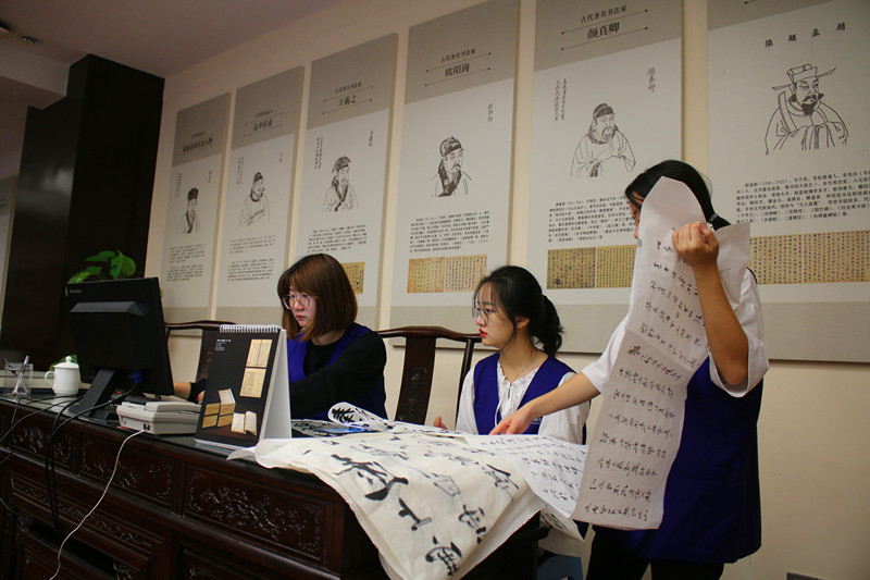 志愿者整理书法作品