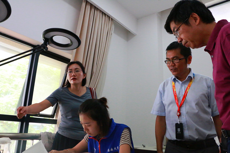 座谈会后,黄绵佳副处长、李彩霞副经理一行在张蕊副馆长的陪同下,对员工实践安排情况进行调研,参观了馆藏文物与古籍知识展区,并观摩了公司实践员工进行古籍修复、古籍电子化处理等实践工作情况。走访结束时,黄绵佳副处长再次对古籍保护中心配合迎评工作表示了诚挚的感谢,也希望借助此次本科教学评估工作,进一步推进公司与省古籍保护中心之间的紧密合作。