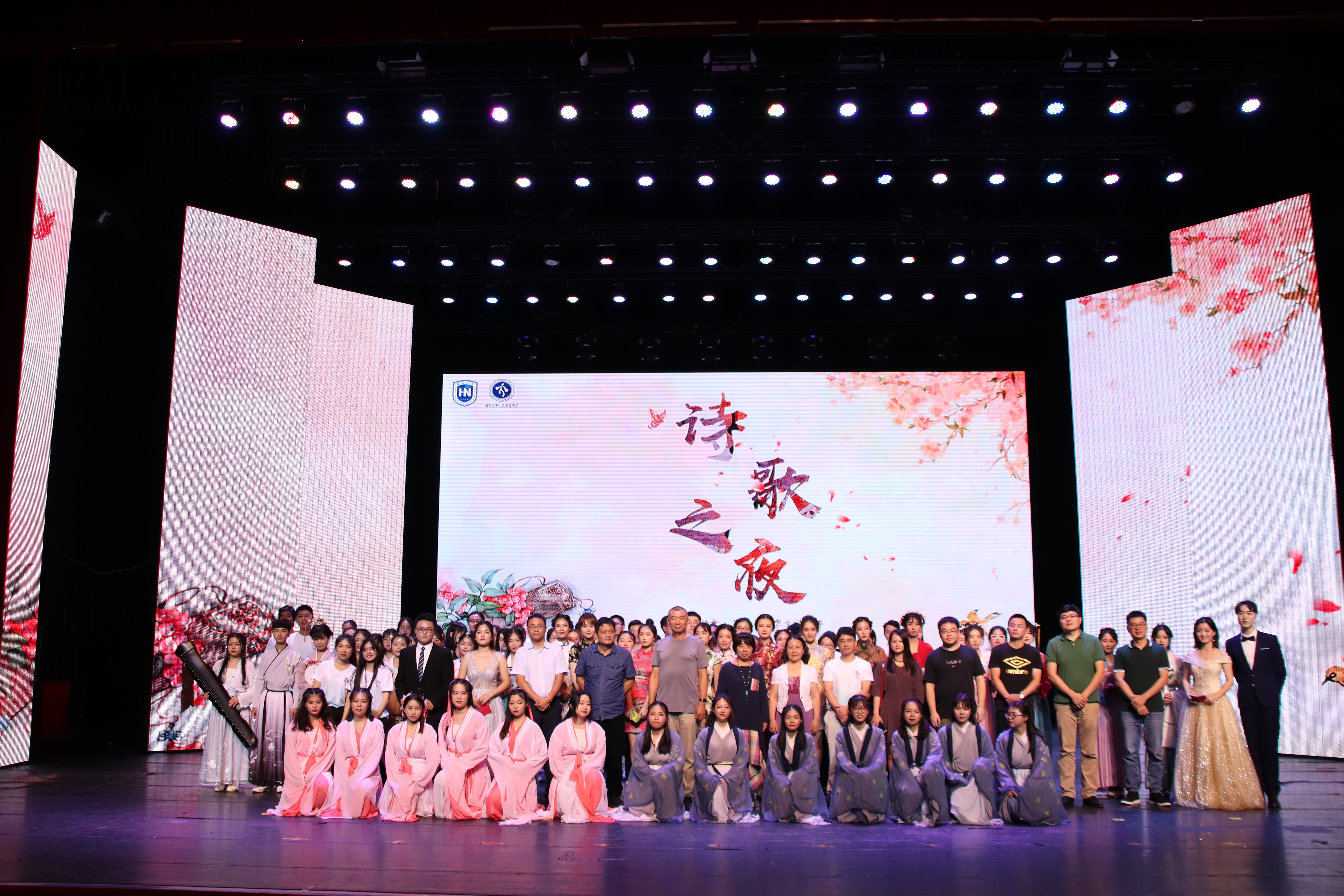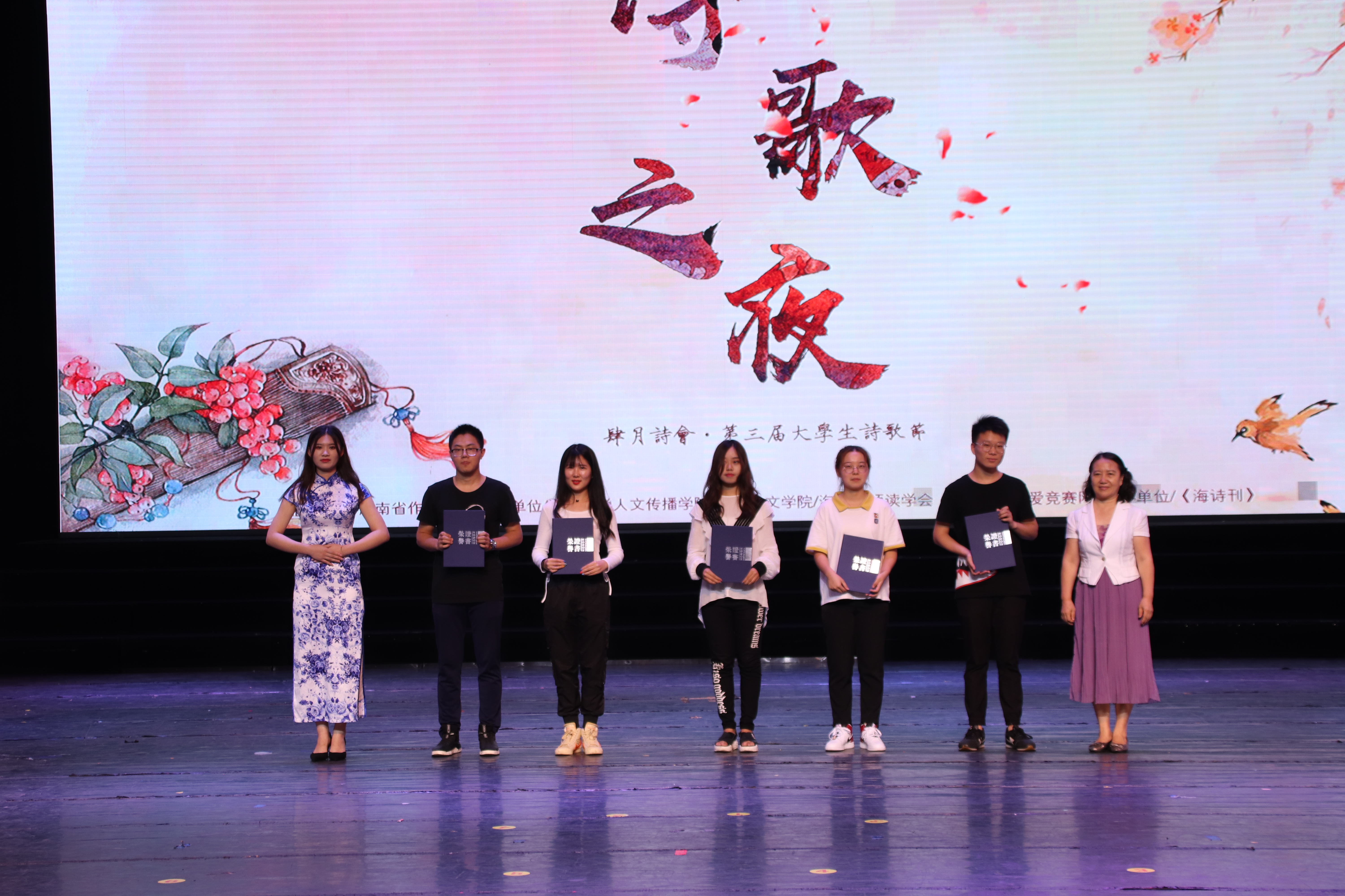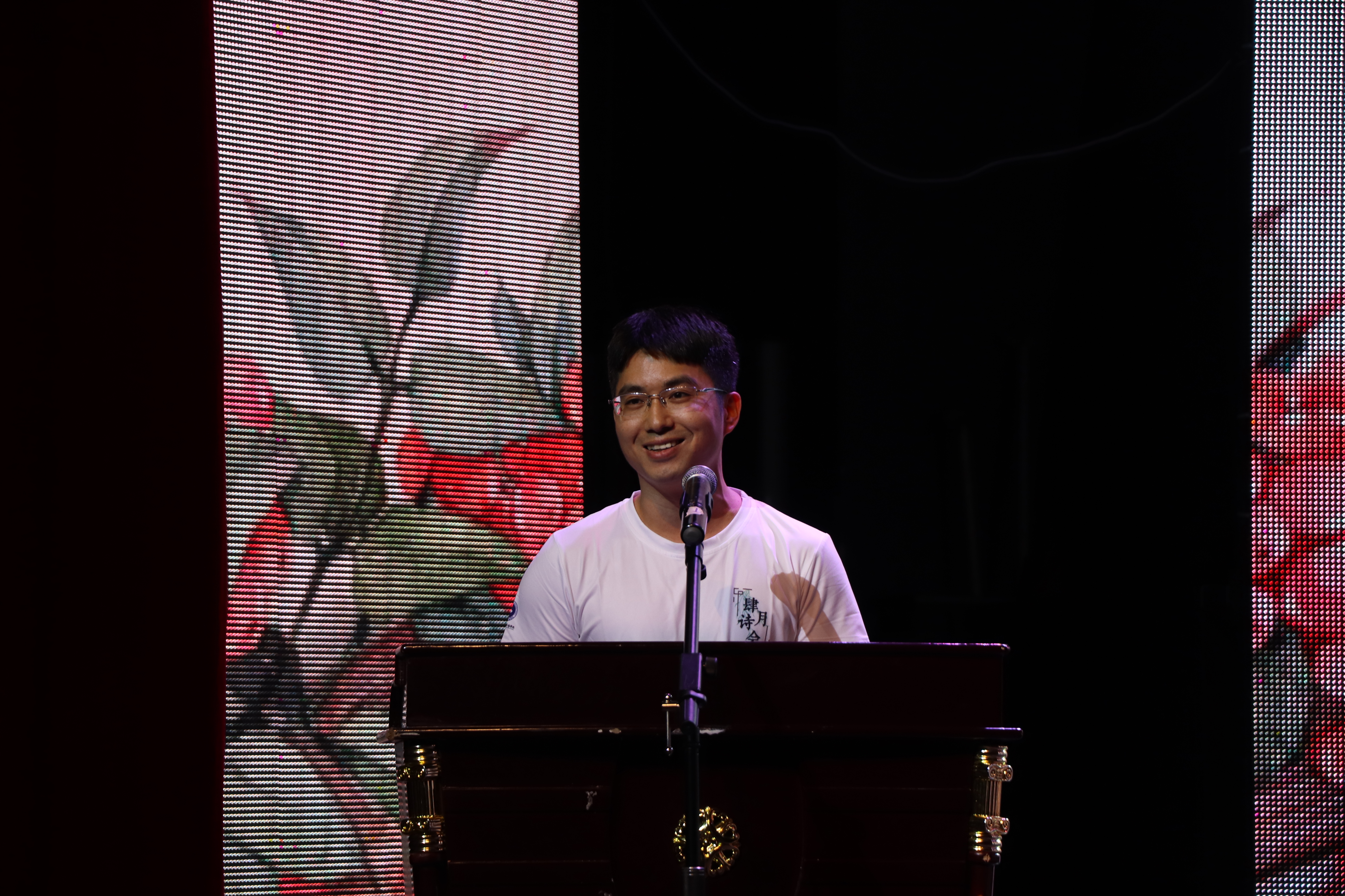 2019年5月11日晚,四月诗会?第三届全国老员工诗歌节闭幕式暨“渺渺诗沧海,烟雨意清风”诗歌之夜在bevictor1946韦德官网思源学堂隆重举行。海南省作家协会副主席、海南省文艺评论家协会副主席江非,海南省颂读协会秘书长巨东,bevictor1946韦德官网人文传播公司党委负责人邱华祥,bevictor1946韦德官网人文传播公司党委副书记孙晓媛,人文传播公司副经理张硕果,人文传播公司中文系教授仲冬梅老师,人文传播公司学工办老师,以及各主办单位的领导嘉宾莅临晚会现场。