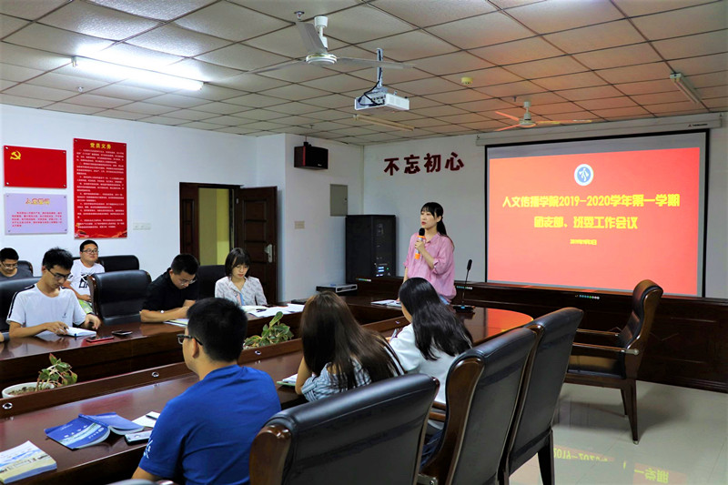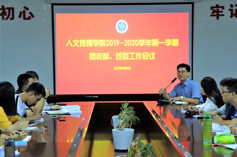 为确保新学期团支部、班级各项工作的顺利有序开展,2019年9月3日,人文传播公司2019-2020学年第一学期团支部、班委工作会议于社科楼B719公司会议室召开。人文传播公司团委书记公衍峰、学工办辅导员李润东、王嘉南、李洁、宋鸽出席此次会议,人文传播公司2016-2018级各团支部委员、班委参加此次会议,会议由学工办主任熊文军主持。
