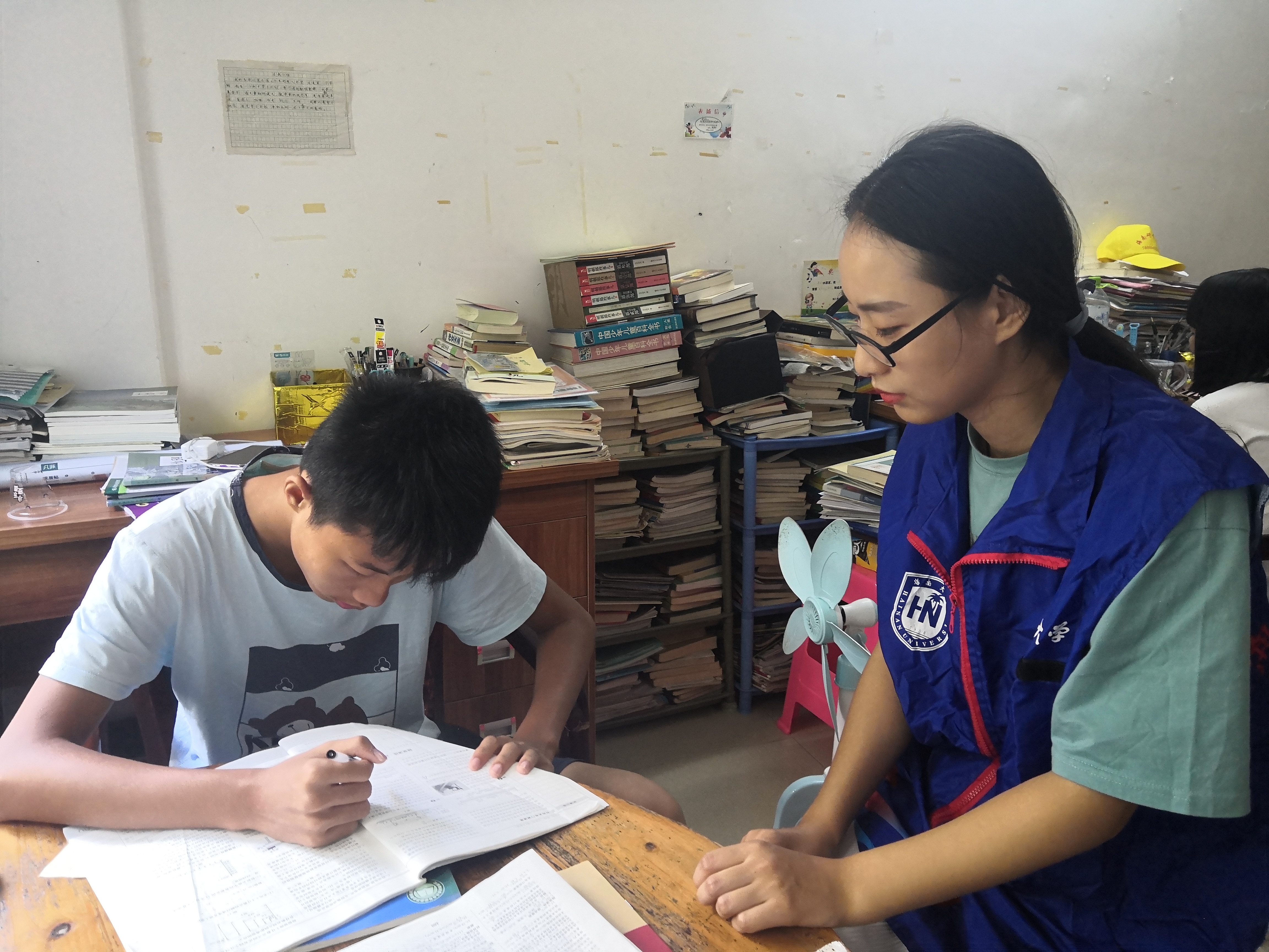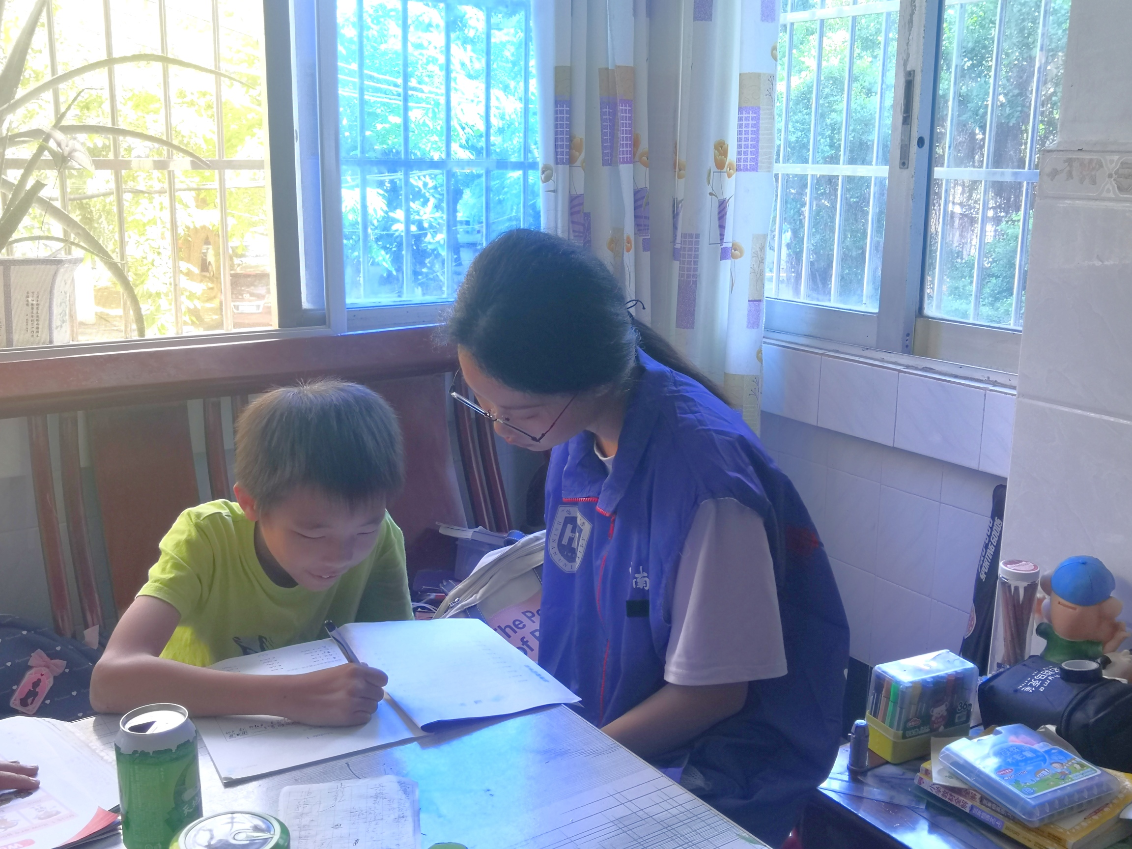 志愿者陪孩子完成作业