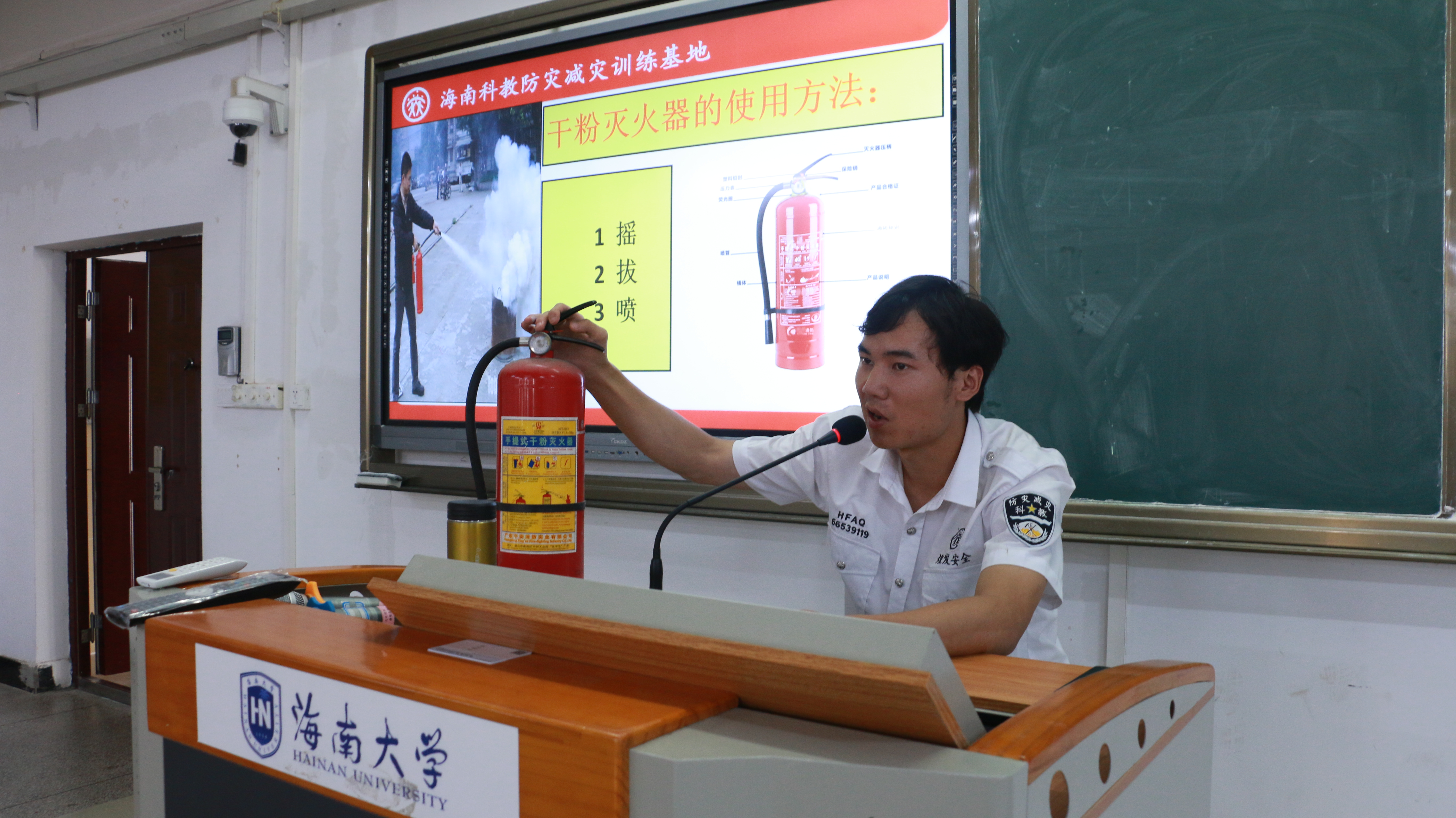 讲座开始前,辅导员李洁向同学们介绍了主讲人谢艳平教官以及海南科教防灾减灾训练基地概况。随后,讲座正式开始,谢艳平教官以一些典型的火灾案例为切入点进入正题,强调了培养防灾减灾意识的重要性。而后,谢教官列举了一些生活中的安全隐患,并为同学们细致讲解了使用家用电器的注意事项,同学们从谢教官的生动讲述中受益良多,并积极参与问答活动。同时,谢教官从专业角度出发,阐述了火灾发生时正确的处理方式,并对每一环节进行原因分析,让同学们对火灾自救逃生有了更深刻的认识。最后,谢教官为同学们介绍了干粉灭火器、泡沫灭火器等常用消防工具的正确使用方法,并呼吁同学们加强防范意识,家中常备消防工具。讲座尾声,谢教官强调在遇到险情时,保重生命才是第一要务,切勿贪恋钱财,错失逃生机会。