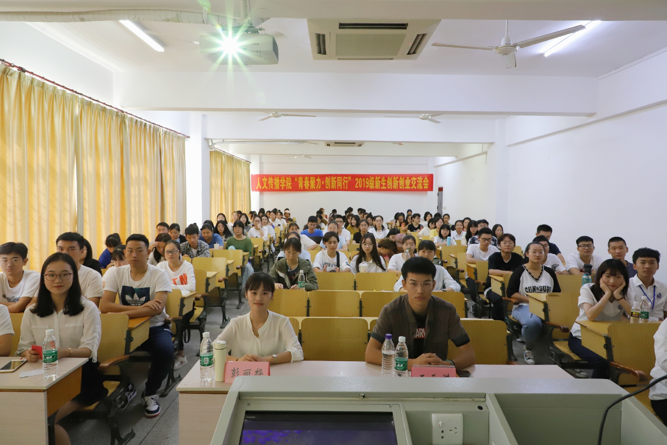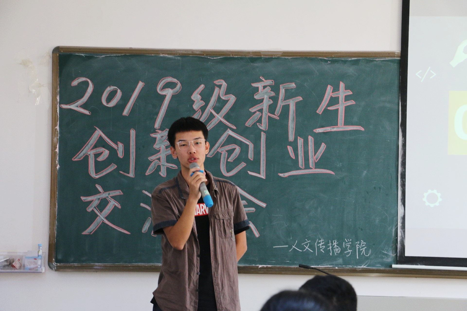 为更好地引导2019级新生投身创新创业活动,增进19级新生对“创新创业”的了解,2019年10月26日上午9:30,人文传播公司“青春聚力·创新同行”2019级新生创新创业交流会于城西教学楼9A01顺利开展。本次活动由人文传播公司团委创新创业部举办,16级广告专业创新创业优秀员工代表彭丽桦学姐和18级中文专业创新创业优秀员工代表王天祺学长进行了创新创业经验分享。约130名人文传播公司新生参加了此次活动。