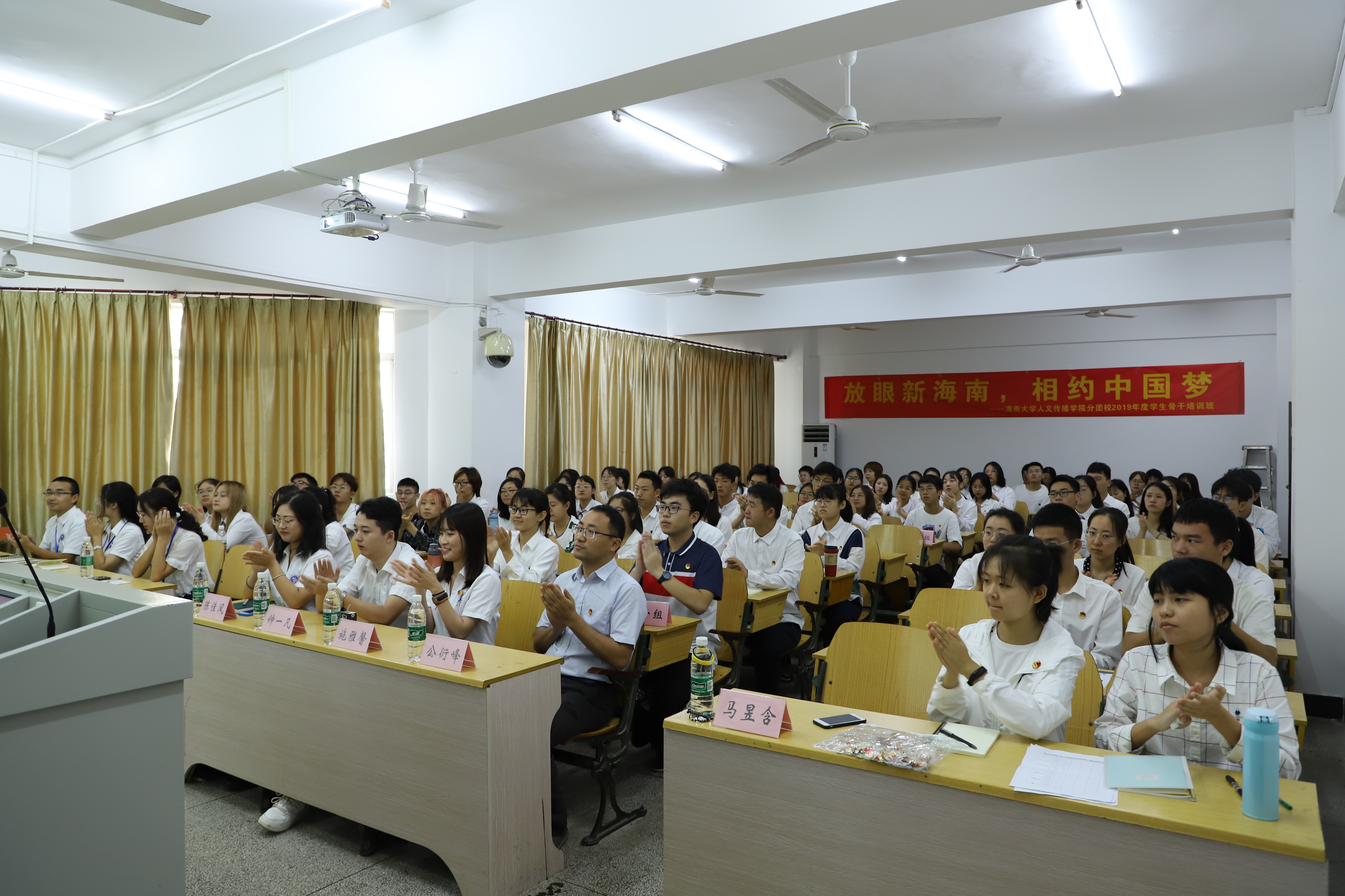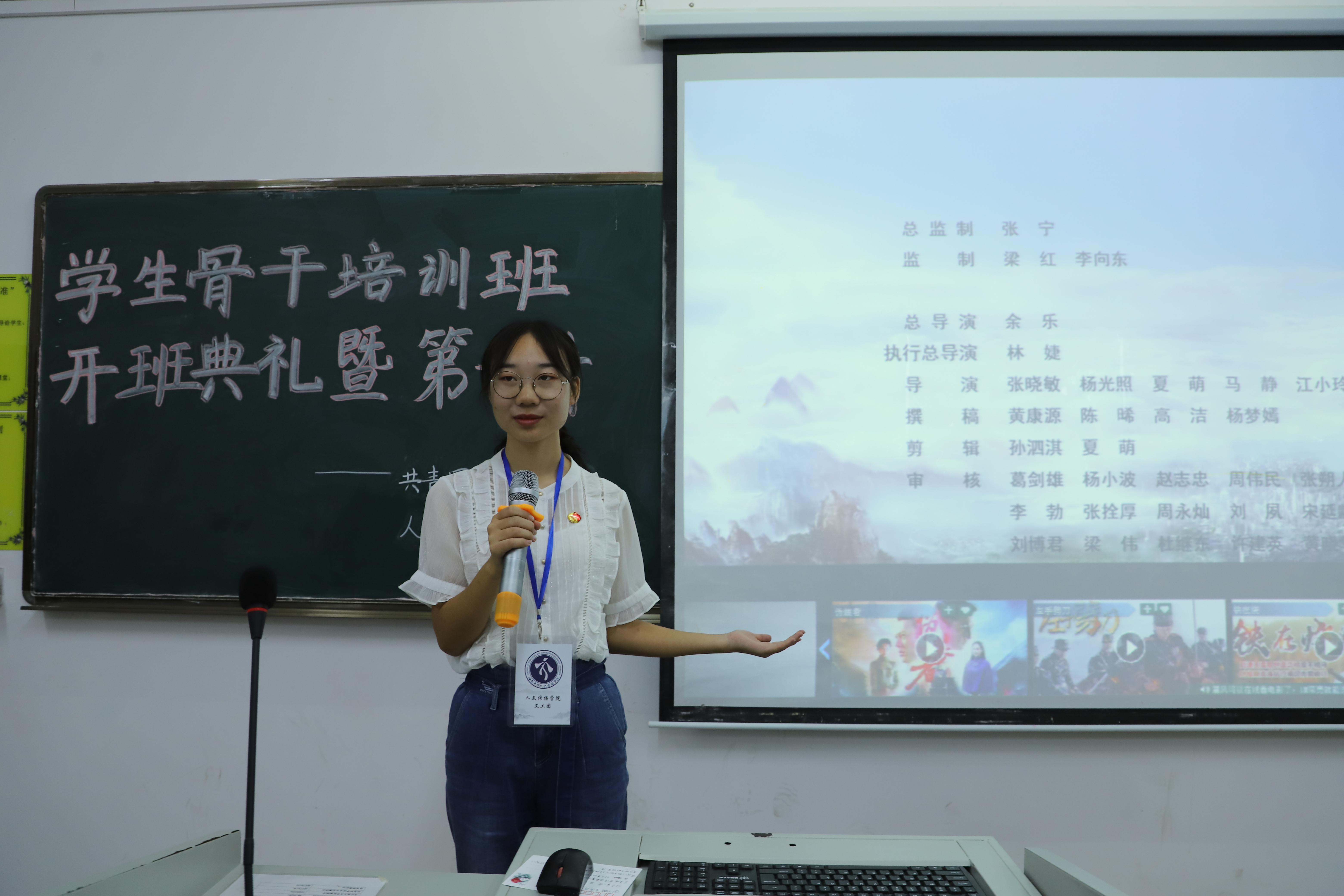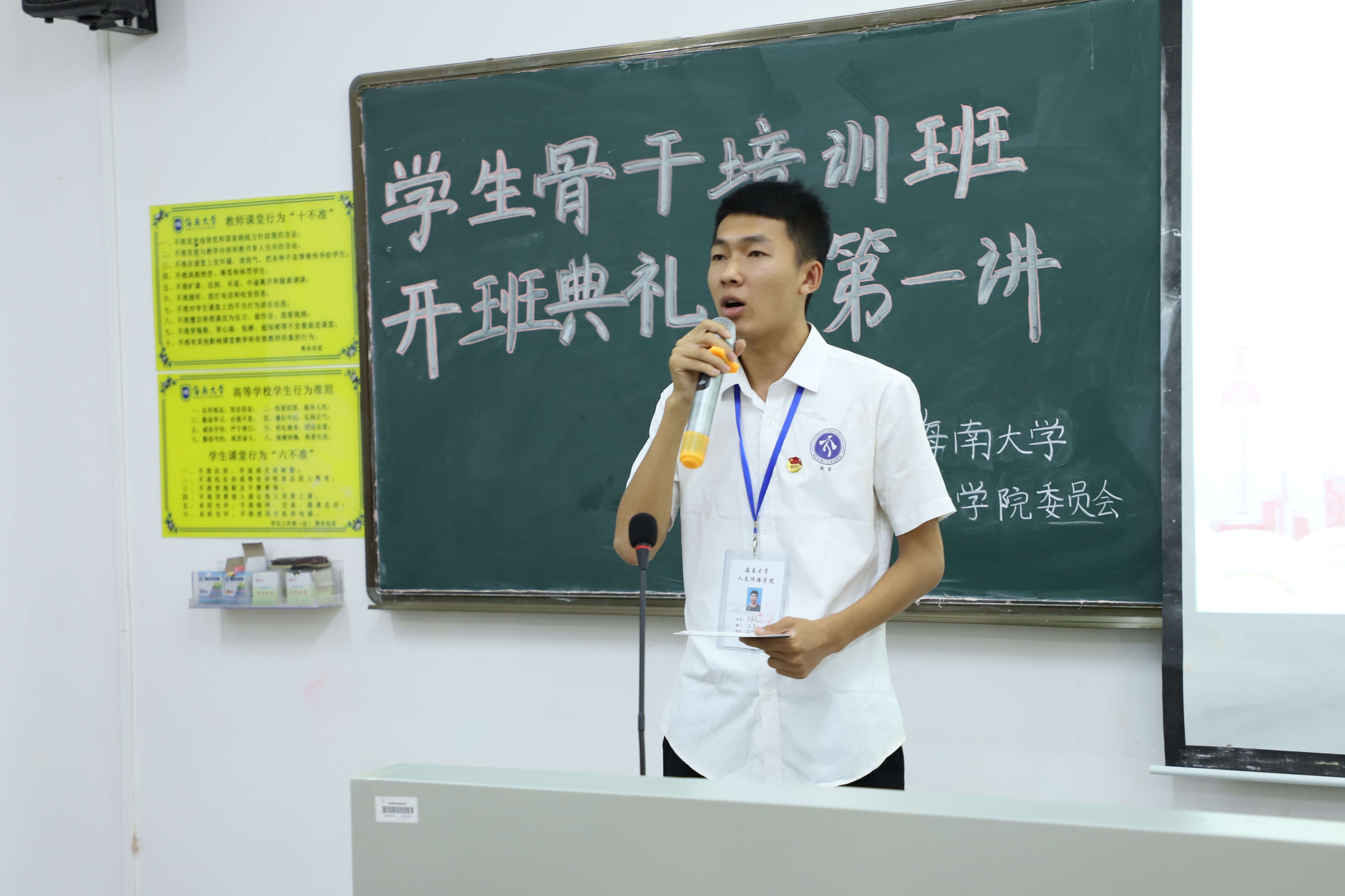 主持人马昱含上台依次介绍到场嘉宾并宣布人文传播公司分团校员工骨干培训班正式开班。